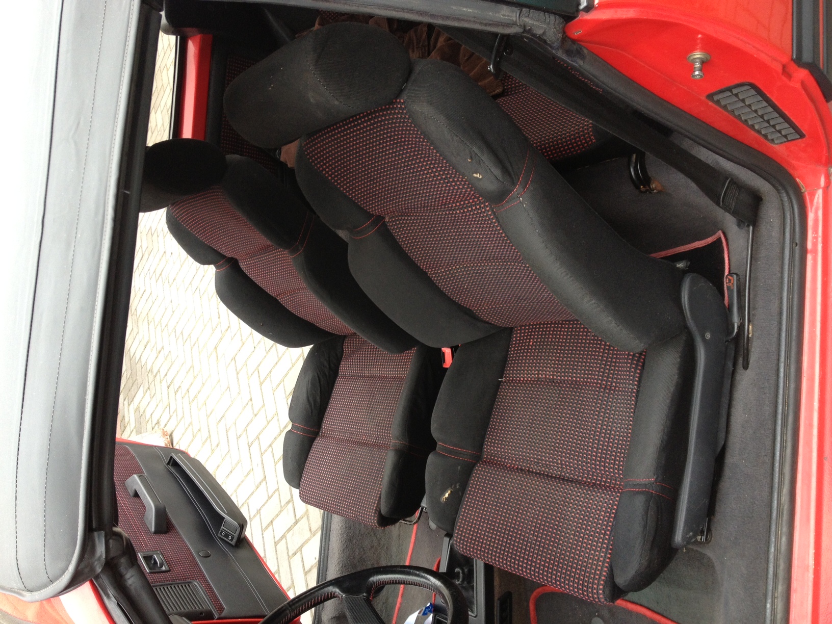Zamontowałem nowe fotele. Wcześniej zostały wyprane, ale nie przyniosło to zamierzonego efektu. Trudno. Zawiozłem je tez do tapicera aby zrobił "zaprawki", ale ten stwierdził że to nie ma sensu, bo jeśli wbiłby w nie igłę, to materiał by się spruł. Polecił by jeździć aż się całkiem nie skończą i obić całość na nowo. Tak zrobię. Może i nie są jakieś tam bombowe, ale przynajmniej są sztywne!