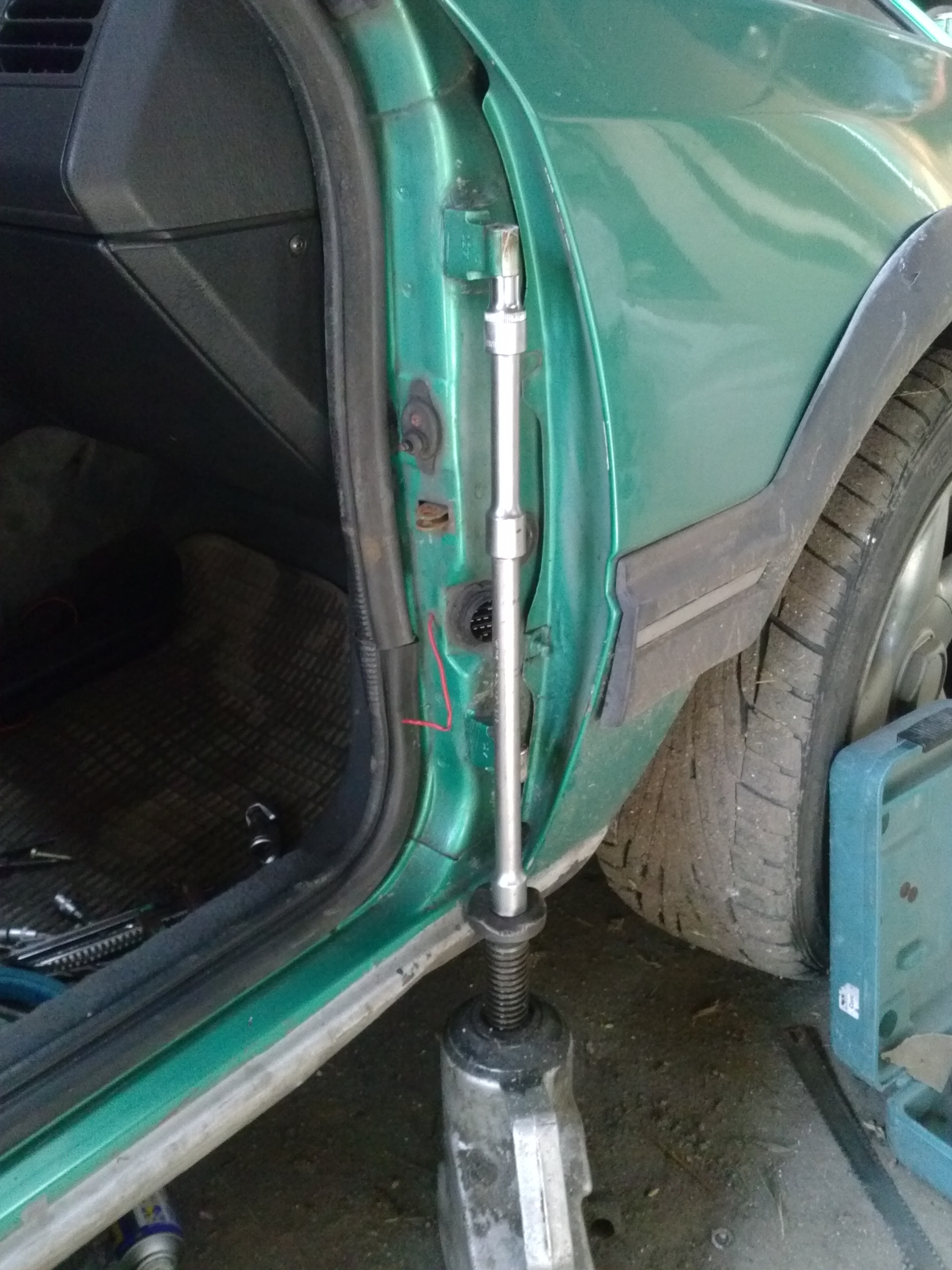 Oczywiście nowe sworznie prosto z ASO za pare zeta sztuka, kilo smaru, młotek, lewarek, grzechotka, nurz