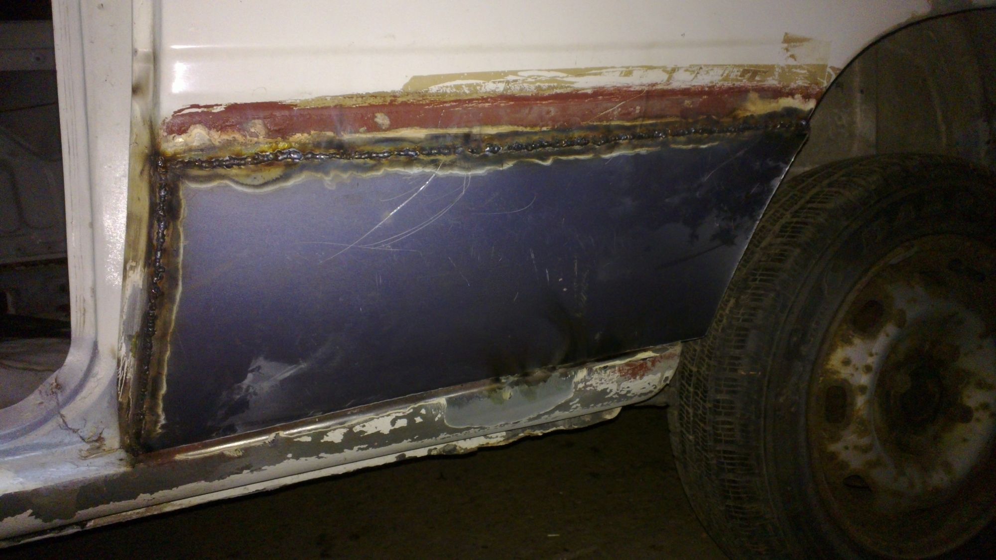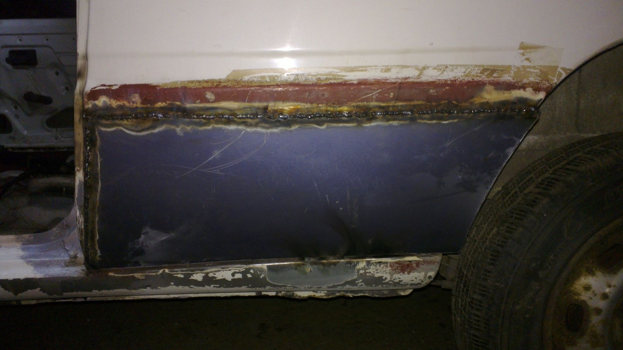 -zaspawałem dziury, po przelotkach przewodów paliwowych i hamulcowych (zostaną puszczone w kabinie)