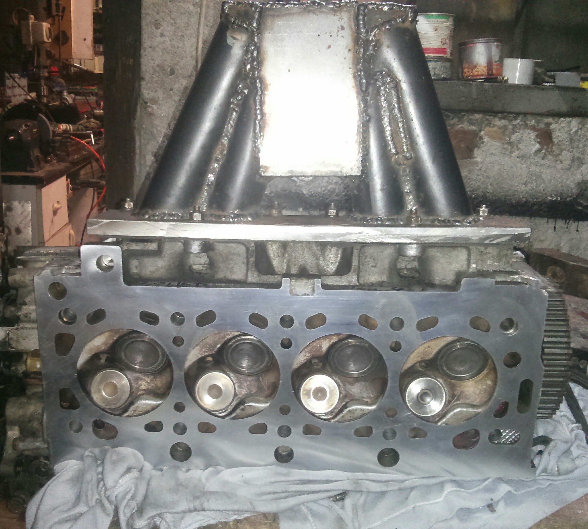 I tu doradzam, od razu robić kolektor pod 4 gaźniki. Jest łatwiej i lepiej. Trzeba pamiętać o nachyleniu kanałów kolektora pod odpowiednim kątem, aby gaźniki były pochylone tak żeby płuwaki byly poziomo :) Przy gaźnikach z r1 potrzeba kąta 45 stopni. Dwa kolanka hamburskie po 90 stopni rozcięte na pół i już ;) Trzeba pamiętać tylko, żeby zmieścić się z łapą silnika bo jest ciaśniej niż przy 1.4.