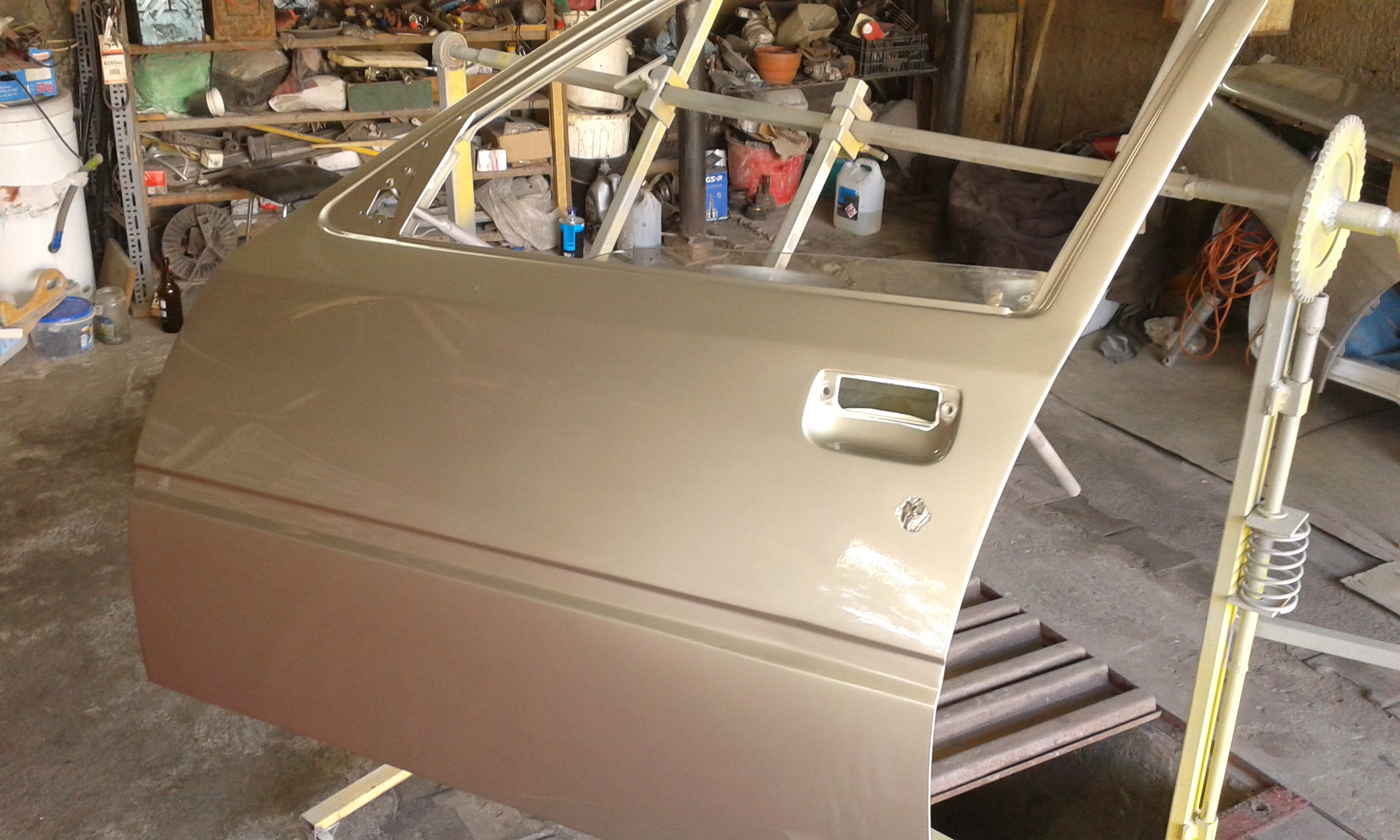 ECN. Odcienie są ponumerowane od jeden do trzy. Im wyższa liczba, tym kolor posiada więcej pigmentu srebrnego. Zanosi się więc na to, że będę miał auto w tych trzech odcieniach, bo polakierowaliśmy osobno każdy element a ten kolor szampański wymaga malowania całego auta od razu, żeby zlikwidować odcięcia koloru. Mimo to jestem zadowolony z efektu pomimo kilku wad, jakie jednak muszą pozostać do czasu kolejnego malowania za trzydzieści jeden lat