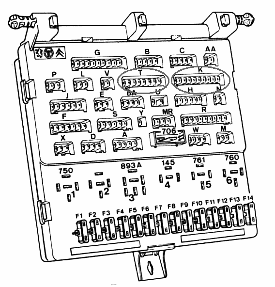 Przewody te należy zatem przepiąć także na tablicy bezpieczników. Nr 51 jest na pinie nr 1 w kostce K. Nr 13A jest na pinie 9 w kostce K. Numeracja pinów na tablicy bezpieczników od prawej do lewej strony.