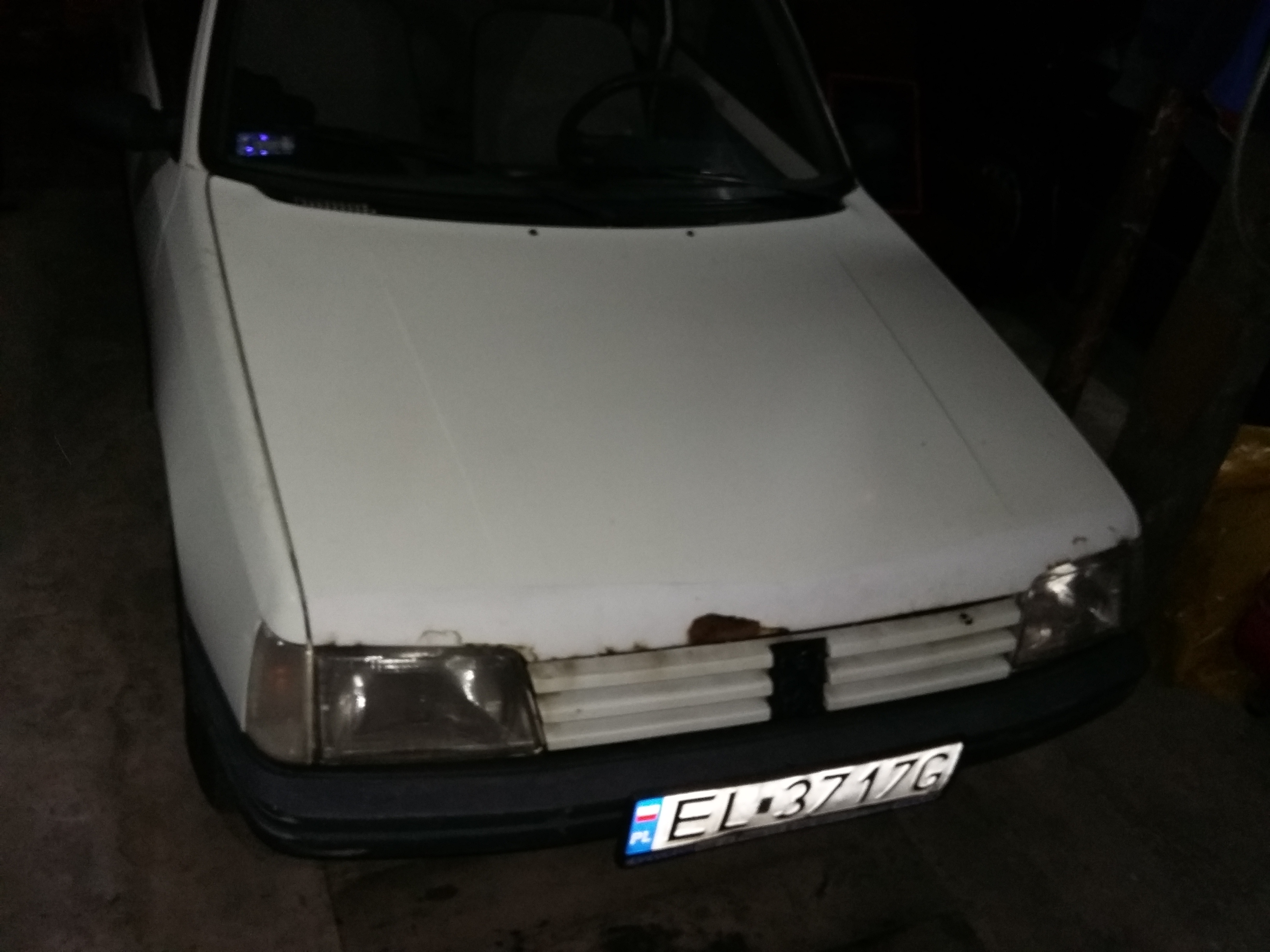 Po długim zastanowieniu, nudzie w sobotni poranek w pracy i wygrzebaniu znikomych fot mojego niedawnego nabytku (jest ich mało bo uważam że jeszcze nie jest sie czym chwalić:p) postanowiłem pokazać moją 205 w dieslu. Po sprzedaży mojego poprzedniego daily (ori Golfa 2 gti 16V) przyszedł czas na poszukiwanie czegoś co powinno być z założenia niedrogie w użytkowaniu...po obejrzeniu jakiś 15 samochodów które okaząły się blacharsko słabizną przyszedł czas na peugetoa. podkreślę że nie szukałem konkretnie auta z pod znaku lwa:) Historia samochodu dość ciekawa ponieważ miał tylko dwóch właściceli, kupiony w Łódzki salonie w 91 roku przez starszą panią po czym odsprzedany 10 lat temu sąsiadowi który zakupił go dla córki. Wszystkie dokumenty typu książki itp, przebieg 150 tys km. Maska do wymiany ponieważ jakis stolarz ją rzeźbił na rancie po delikatnej przygodzie. Generalnie samochód cąły w ori bez kolizji prócz wspomnianego rantu maski. Zawieszenie z przodu wesoło sobie postukuje(już nad tym pracuje i zbieram fanty), odzywa się podpora półosi, miał przepalony wydech (juz wymienione), automat od ssania( nowy) i jeszcze patu innych o których pewnie zapomniałem wspomnieć. Dokupiłem do niego tydzień później dawce maski i paru gratów czyli green'a. Generalnie plan jest przywrócić autko do stanu godnego użytkowania + korekta i cycek oraz jakieś koło i pewnie parę drobiazgów O-)