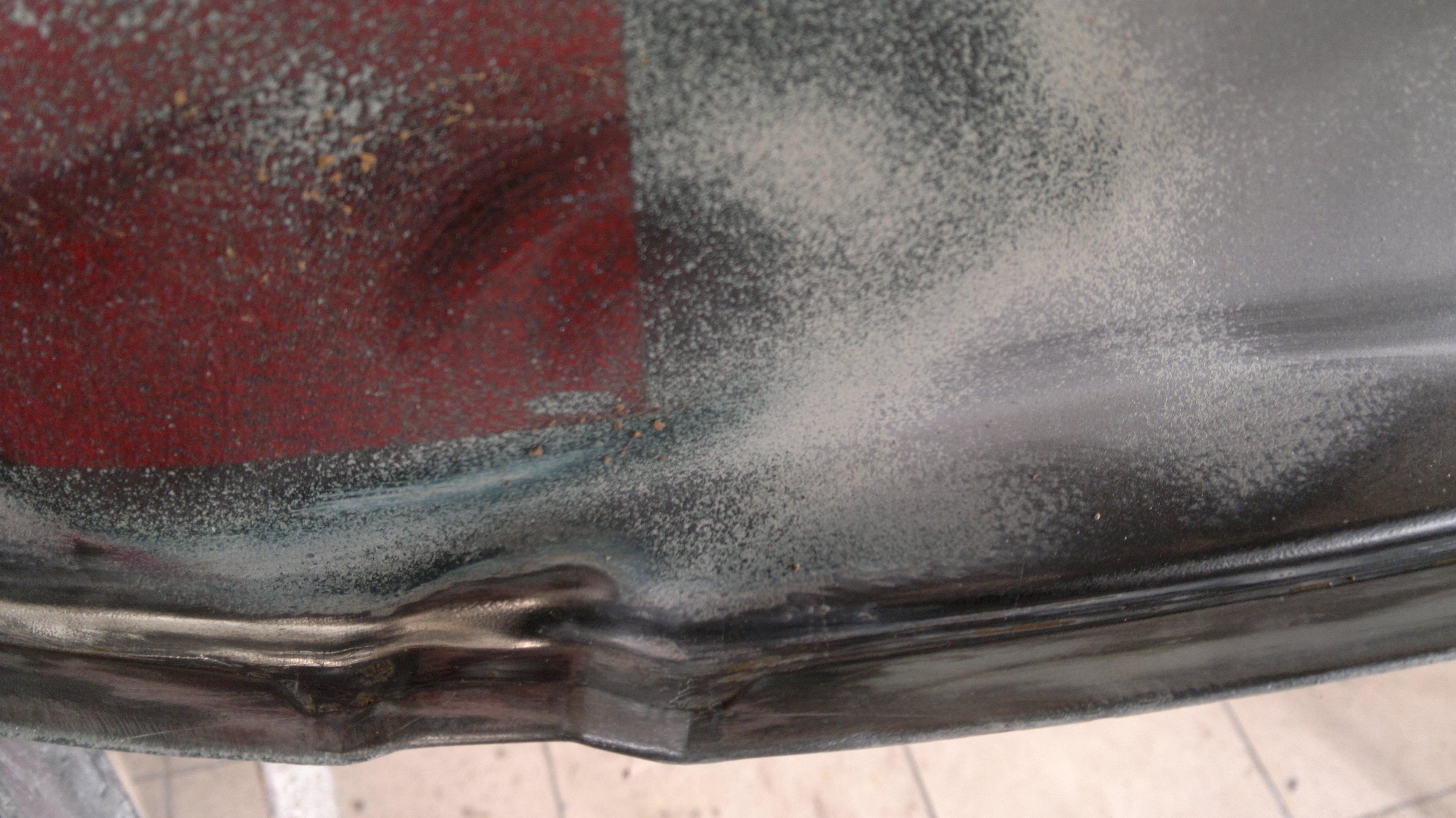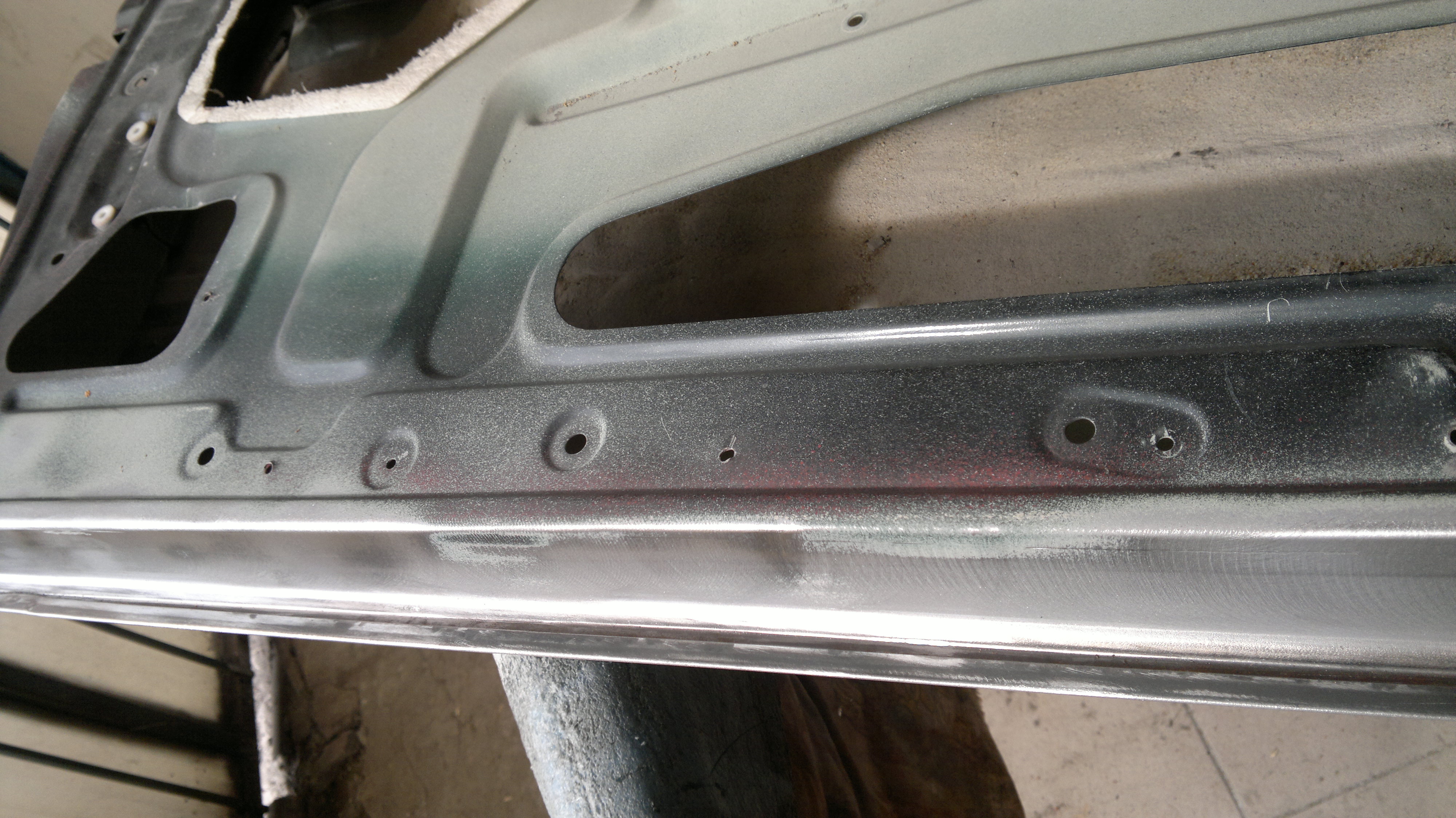 lakierem i dwoma warstwami uszczelnienia. Rdzy nie było widać i drzwi wyglądały na idealne, dopiero po zdarciu lakierowanego uszczelnienia udało się do niej dotrzeć