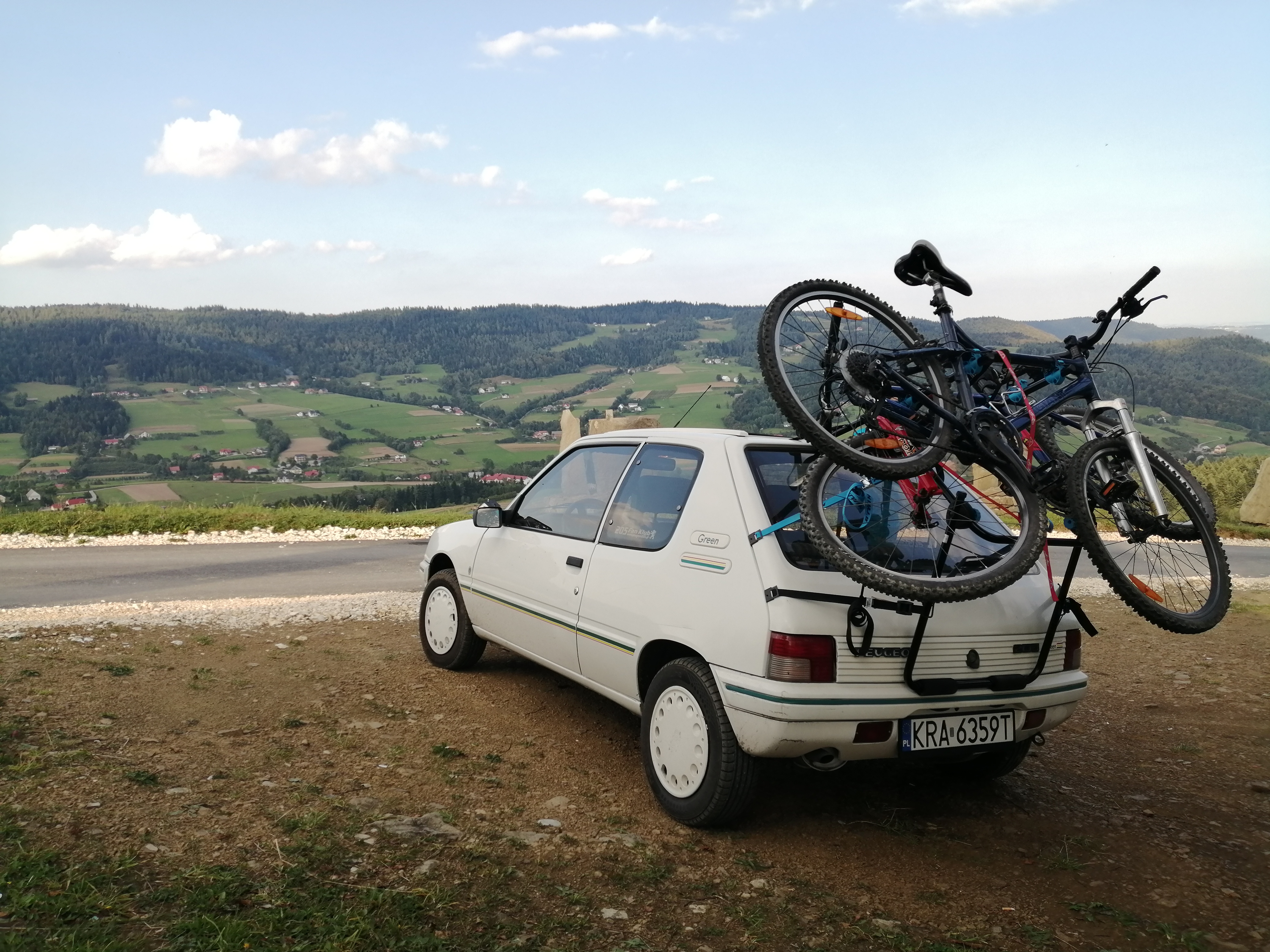 Skoro Peugeot jeździł już dobrze, śmiało można było pojechać nim na dłuższą wycieczkę. Rowerowy bagażnik na klapę auta, sprawdził się bardzo dobrze, chociaż zestaw dwóch rowerów przy 205 wygląda ciekawie ze względu na gabaryty :). 205 bez problemu dowiozła nas w kilka miejsc Beskidu Wyspowego: