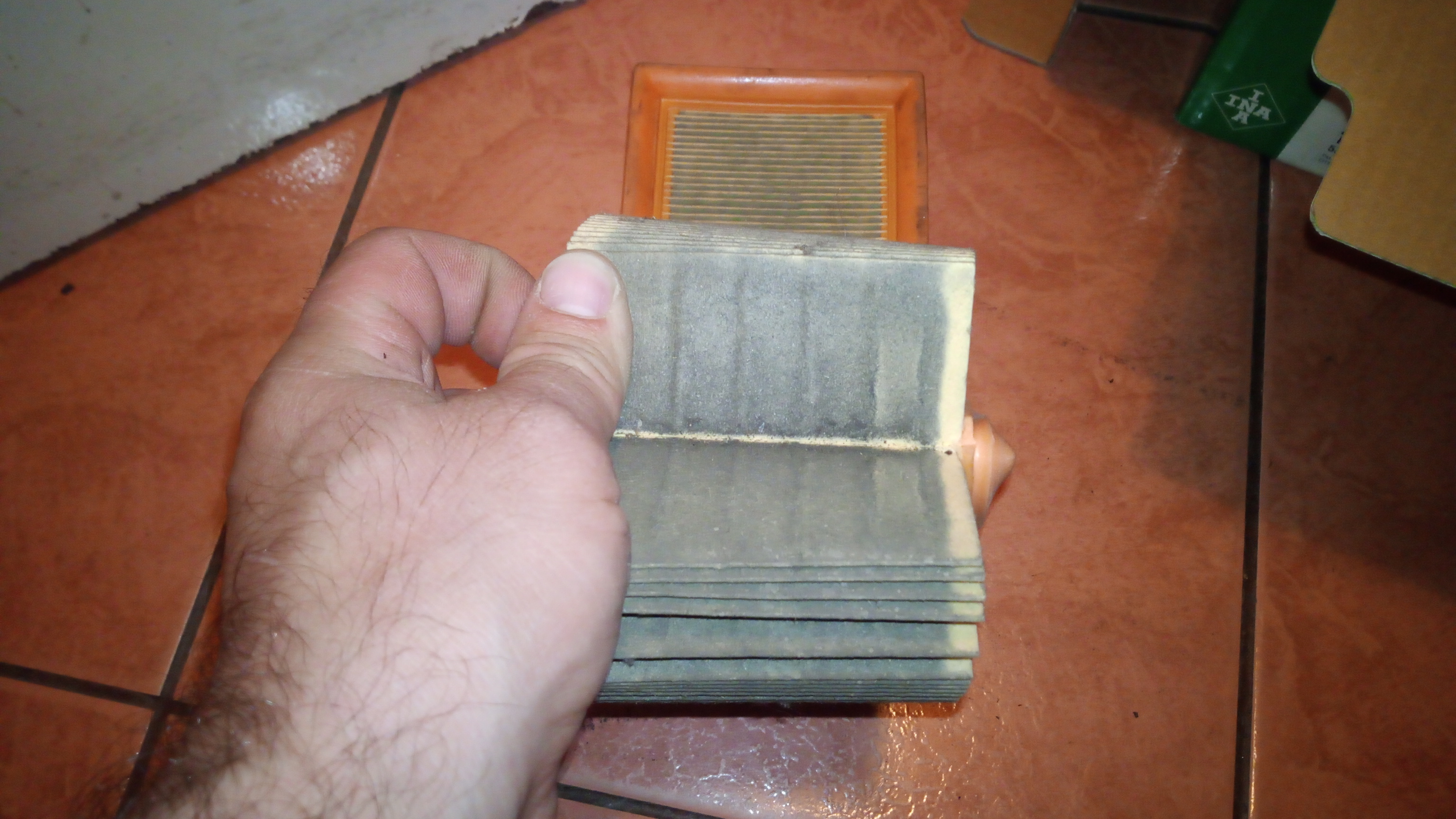 Rozrząd był jeszcze oryginalny, świece zapłonowe Sagema z pierwszego montażu, filtr powietrza z 2012r, filtr kabinowy zabity. Wisienka na torcie były opony Goodyeara z data produkcji 2409.