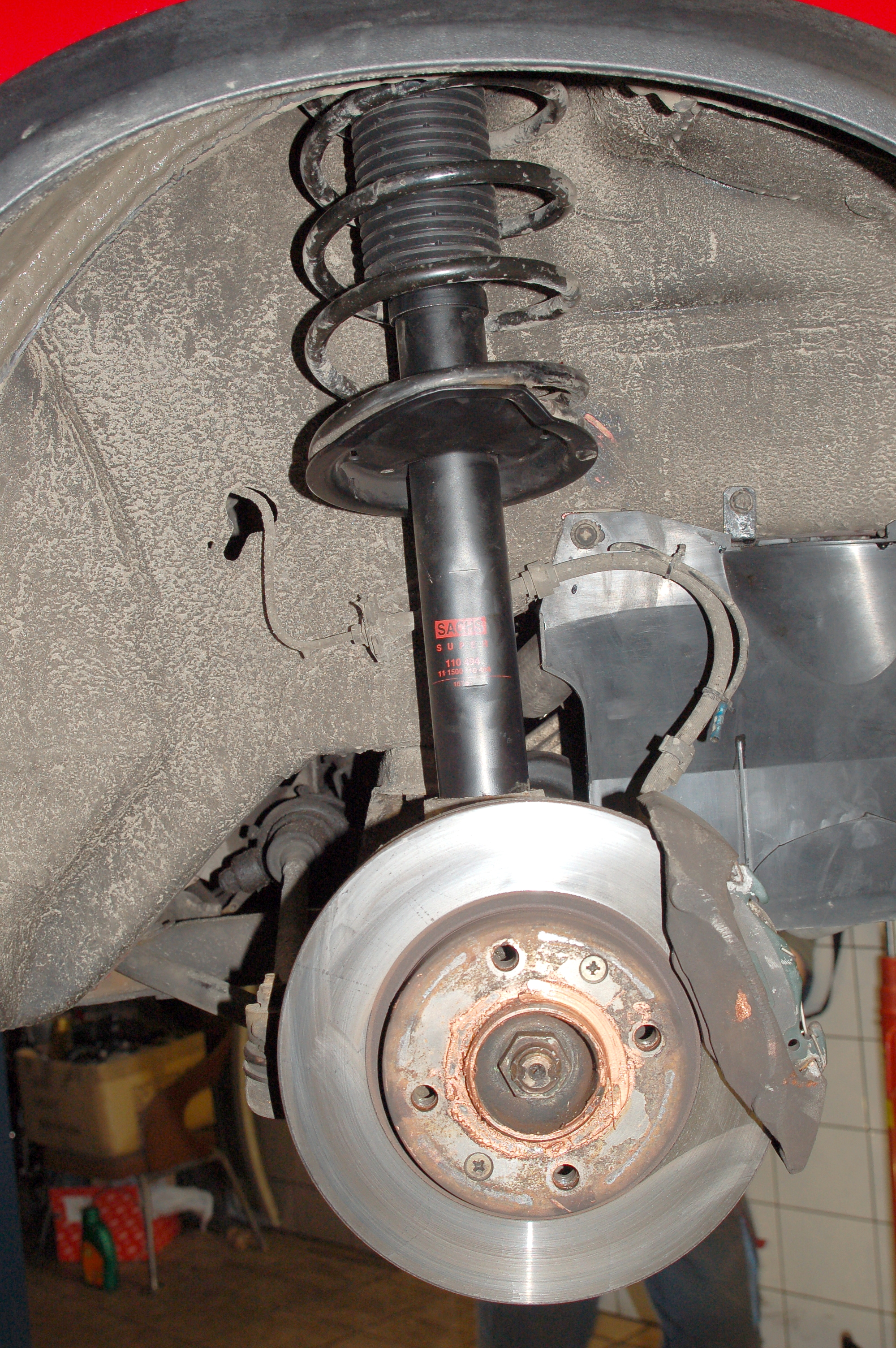 Po raz kolejny czas pozwolił jedynie na wymianę przednich. prócz amortyzatorów poszły nowe łożyska Macphersona gumy, odboje i osłony ( Bilstein ).