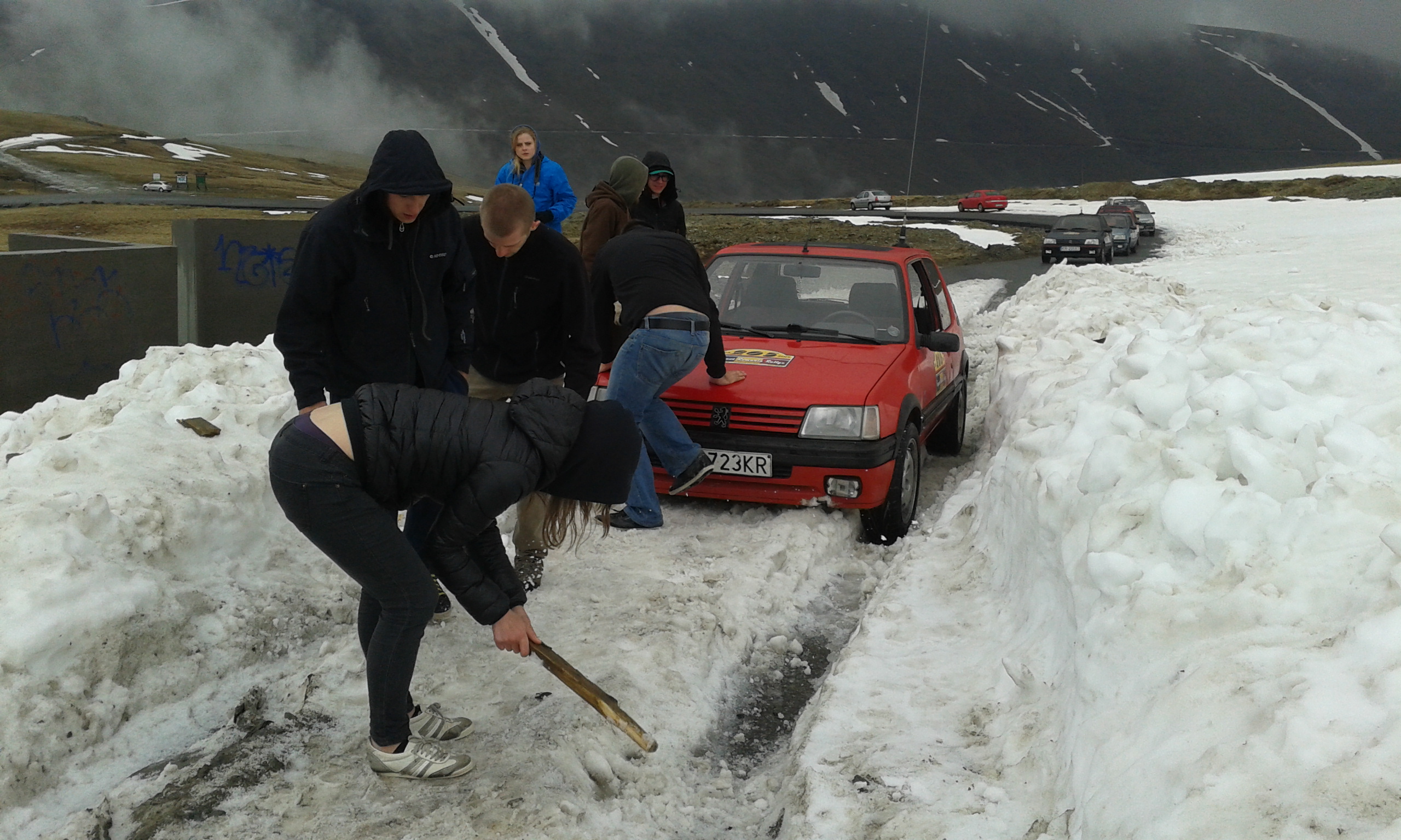 Morfeusza niestety nie ma. Nie mogl pojechac. Tok tez pojechal w swoja strone. My szarpnelismy sie wczoraj na Transalpine mimo ostrzezen i poleglismy. Na wysokosci 2000 metrow zalegalo tyle sniegu ze nie dalo sie dslej jechac. Przez pierwsza zaspe przeprawilismy jeszcze Gadzine ktory zbadal teren i zarzadzil odwrot. Juz wiemy czemu trasa czynna jest tylko latem...