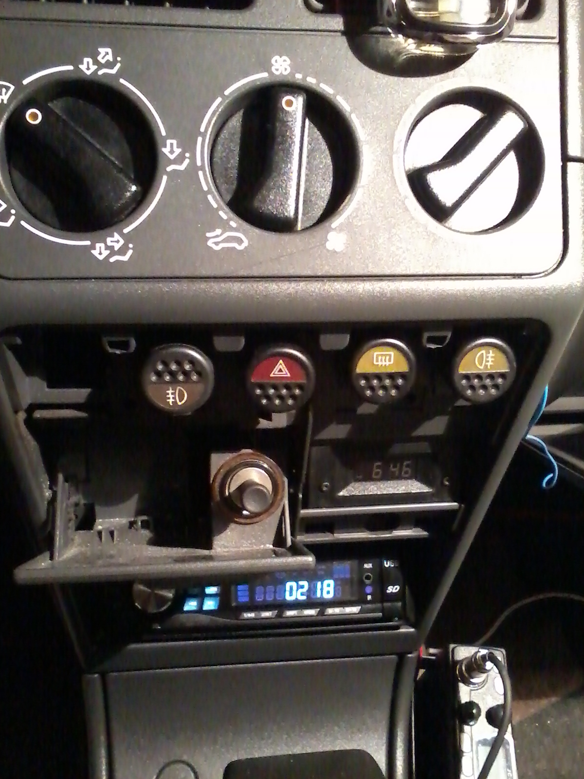 Jako że powinienem już dawno to zrobić postanowiłem poświecić popołudnie na podłączenie halogenów. Po znalezieniu miejsca na przeciągnięcie przewodu zabrałem się za podłączanie kabli. Niestety jak na razie przeciwmgielne muszą świecić razem z normalnymi światłami, a nie z postojowymi lecz za jakiś czas to się zmieni :mrgreen: Co do panelu na przyciski nie wygląda on zbyt perfekcyjnie ale na razie powinien wystarczyć tak jak jest :)