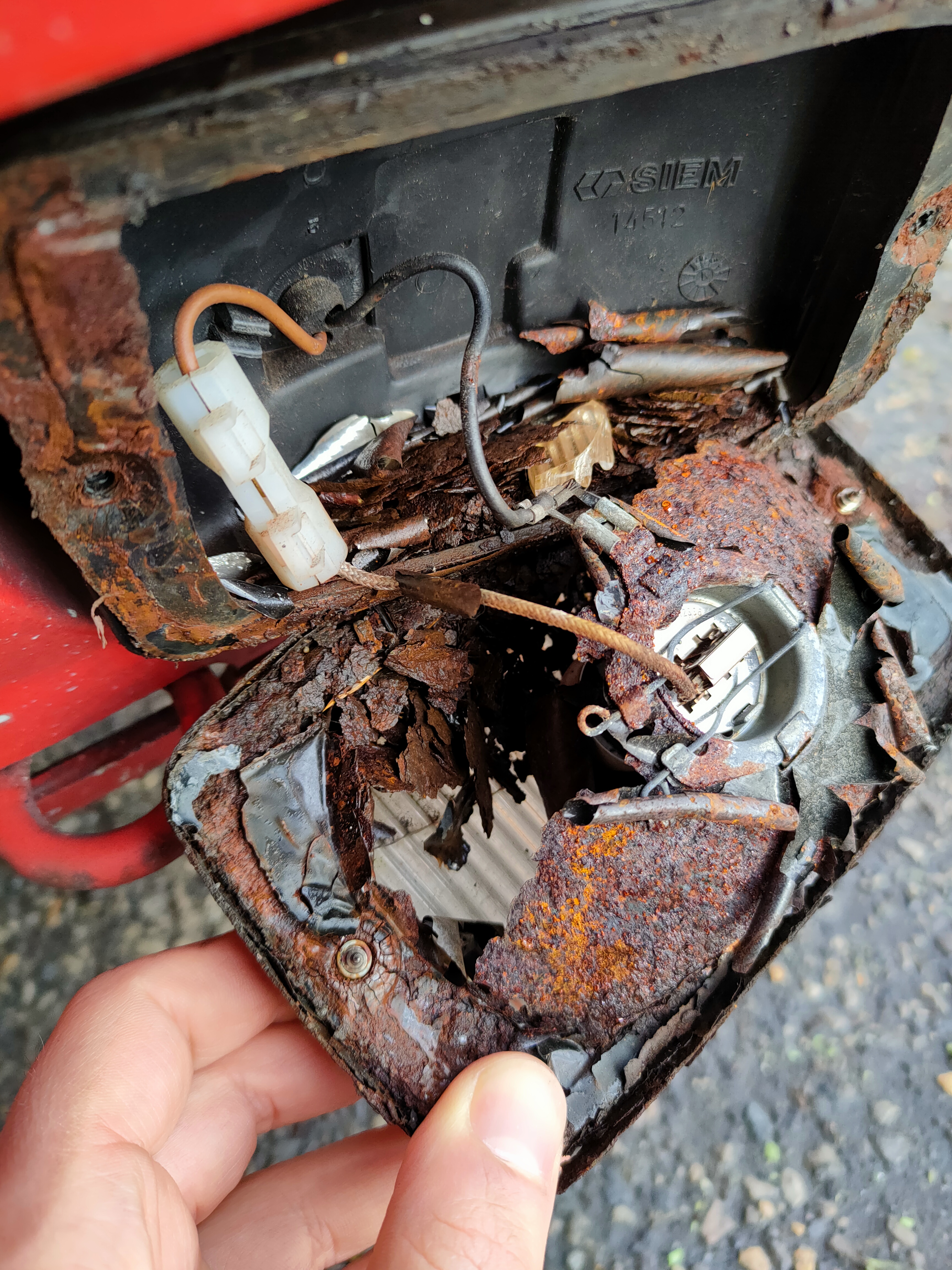 Dzięki wsparciu Rafała udało się zakupić nowe halogeny przeciwmgielne Siem. Jak się okazało, stare były już tak przegnite, że udało mi się z nich ocalić tylko kilka detali.