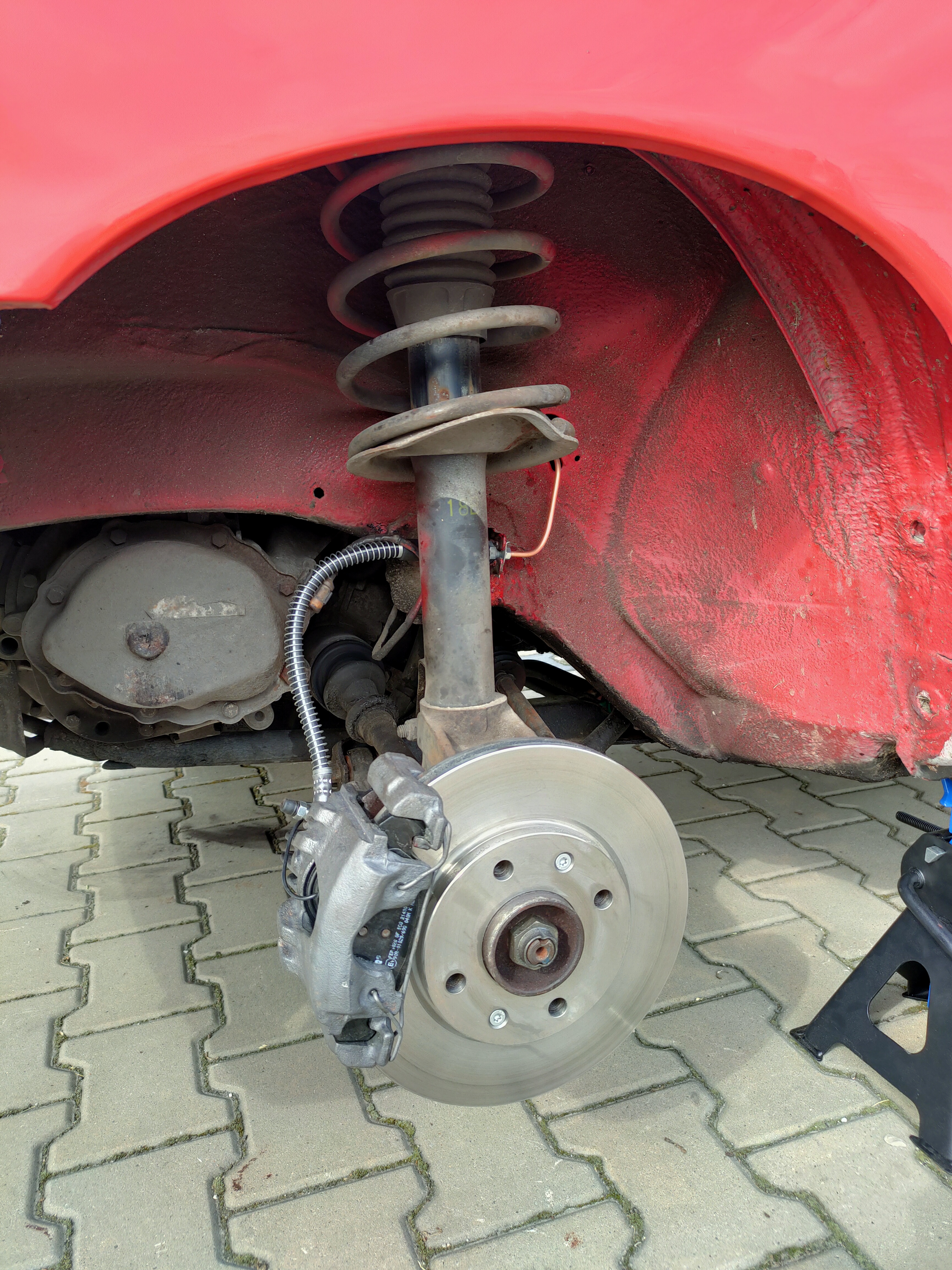 Na szybko zaopatrzyłem się w najtańsze łożysko oraz je zmieniłem, żeby uruchomić znowu auto(nie mam innego). Jednocześnie znalazłem na grupie fb kompletną belkę z szerokimi bębnami i stabilizatorem. Nową belkę zakupiłem i bezpośrednio od sprzedającego wysłałem do Piły do serwisu Szmytek specjalizującego się w regeneracji belek. Regeneracja wymagała zmiany łożysk, czopów oraz uszczelnień, ale przebiegła sprawnie. Niestety po odebraniu belki i zamontowaniu jej na auto, okazało się, że jest za wysoko ustawiona. Belkę odesłałem w celu korekty wysokości. Polecam ten serwis, pomimo tej wpadki, mimo wszystko robili to bez auta w serwisie. W sumie najlepiej umówić się i osobiście pojechać do nich autem, to wtedy już bez problemu powinno pójść wszystko od strzała. Ja jednak wybrałem formę wysyłki, bo jednak z Katowic to jest kawałek 8)7 Przy okazji regeneracji belki, zmieniłem przewody od ręcznego oraz przewody hamulcowe idące na tył(te na froncie zmieniłem w zeszłym roku). Dalej niestety zostało mi skrzypienie w okolicach tyłu auta, które najczęściej słyszę na łuku. Wymienię jeszcze te silentbloki na belce i zobaczymy czy to to.