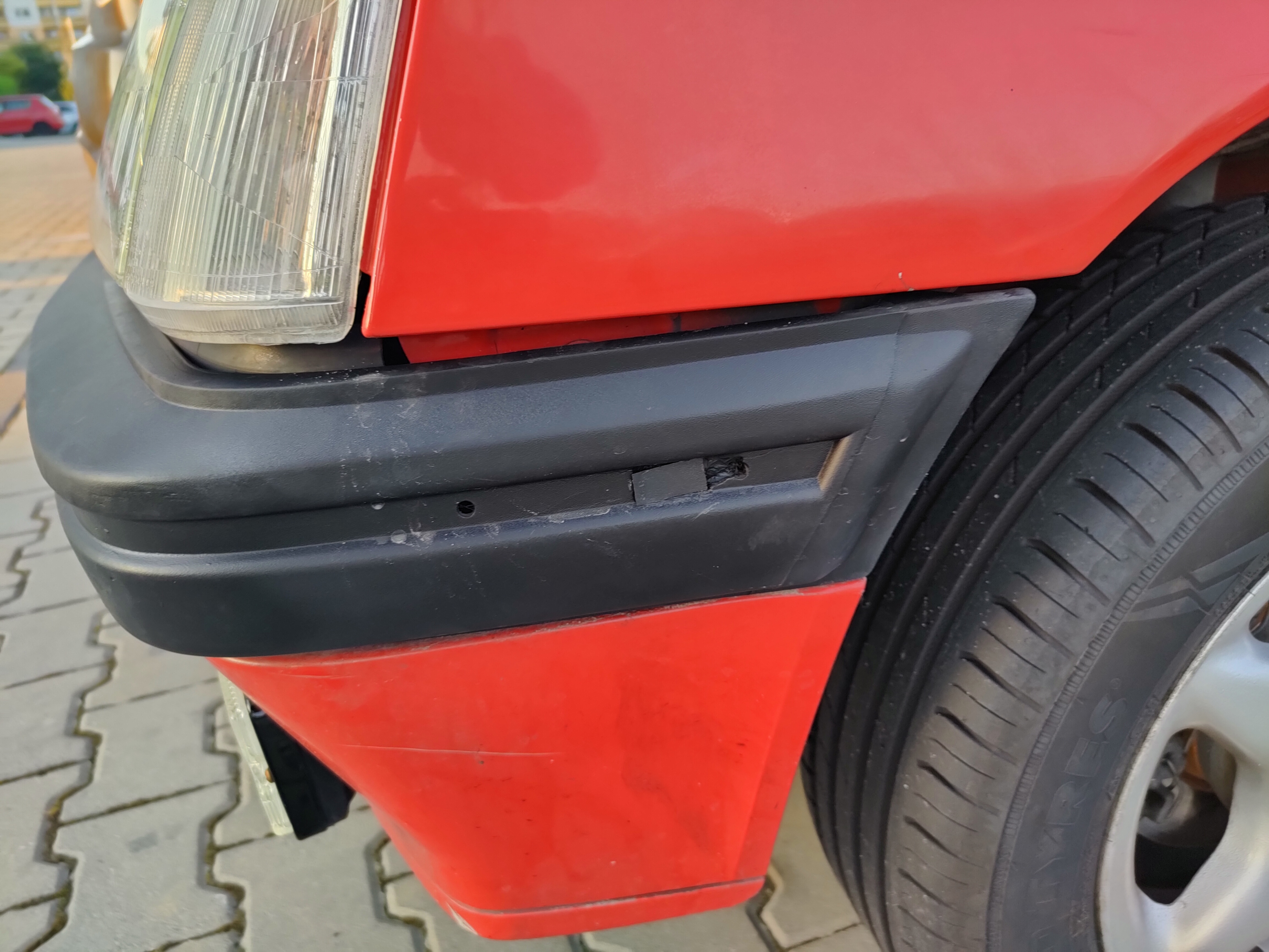 W miedzyczasie postanowiłem zmienić rozmiar opon, ponieważ obecnie używane 175/65 R14 były za duże. Raz, że źle wyglądały, dwa, przy dociążeniu auta szybko zaczyły ocierać o tylnią dokładkę zderzaka. Udało mi się okazyjnie zakupić nowe opony Goodyear Vector 4Seasons Gen2 165/65R14. Póki co jestem bardzo zadowolony z efektu. Założyłem je na czarne, stalowe felgi 14". Planuję założyć fajny kołpak do tego, ale póki co wybór pozostanie moją słodką tajemnicą 8)