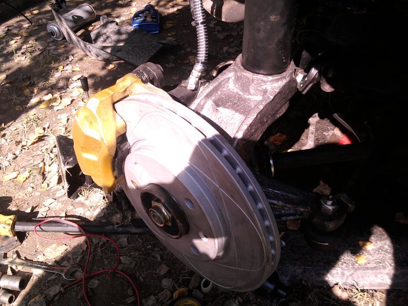 Pozakładałem dzisiaj tarcze, klocki, zwrotnice skręciłem z amorem. Wszystko przesmarowałem, jutro jak pogoda dopisze maluje kielich i montuję Mcphersony.