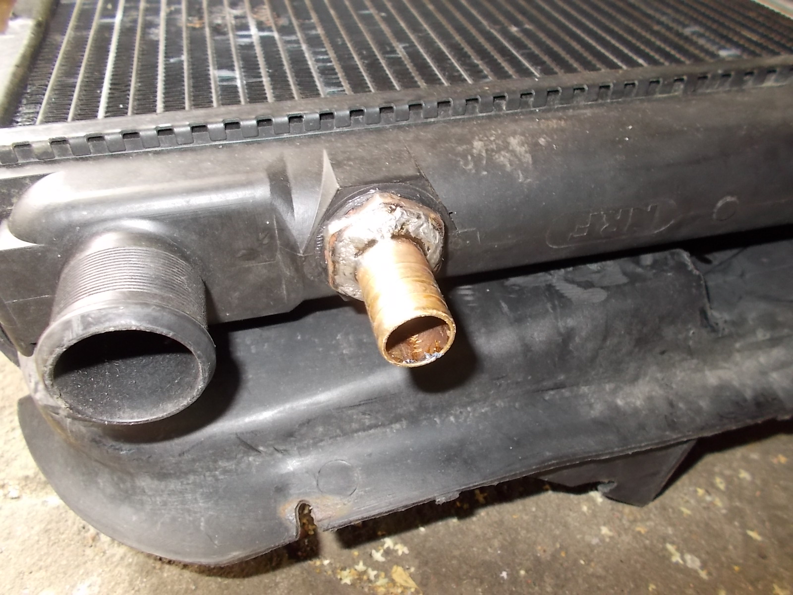 Customowy króciec do powrotu z wymiennika ciepła oleju. Wykonany ze starego termowłącznika i króćca z reduktora LPG.