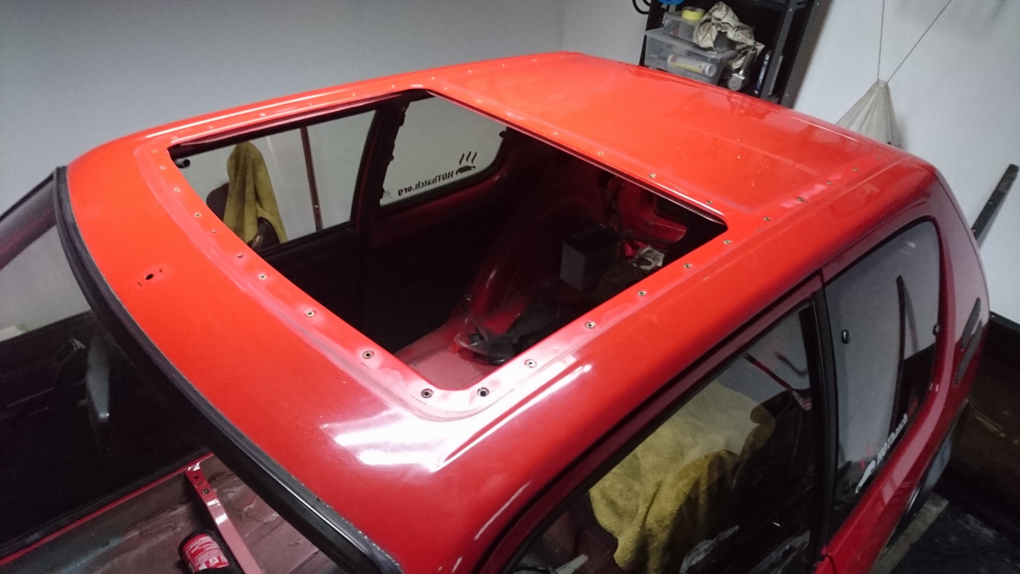 Samochód od razu stał się wyczuwalnie sztywniejszy. Przy okazji usunąłem również szyberdach, który w najbliższym czasie zostanie zastąpiony poliwęglanem.