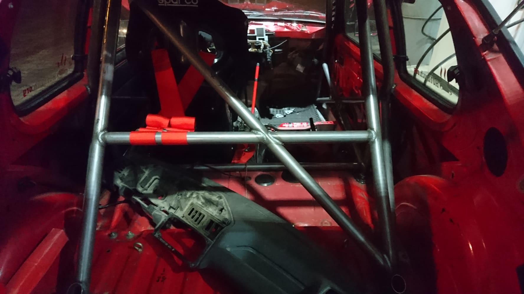 Wybrałem moim zdaniem wersję będącą kompromisem między niską wagą a maksymalnym bezpieczeństwem. Klatka oprócz standardu ma dodatkowo krzyż w drzwiach, rozpórkę poziomą w pałąku głównym. Z tyłu jest przyspawana do mocowania belki tak jak w homologowanych klatach do 205.