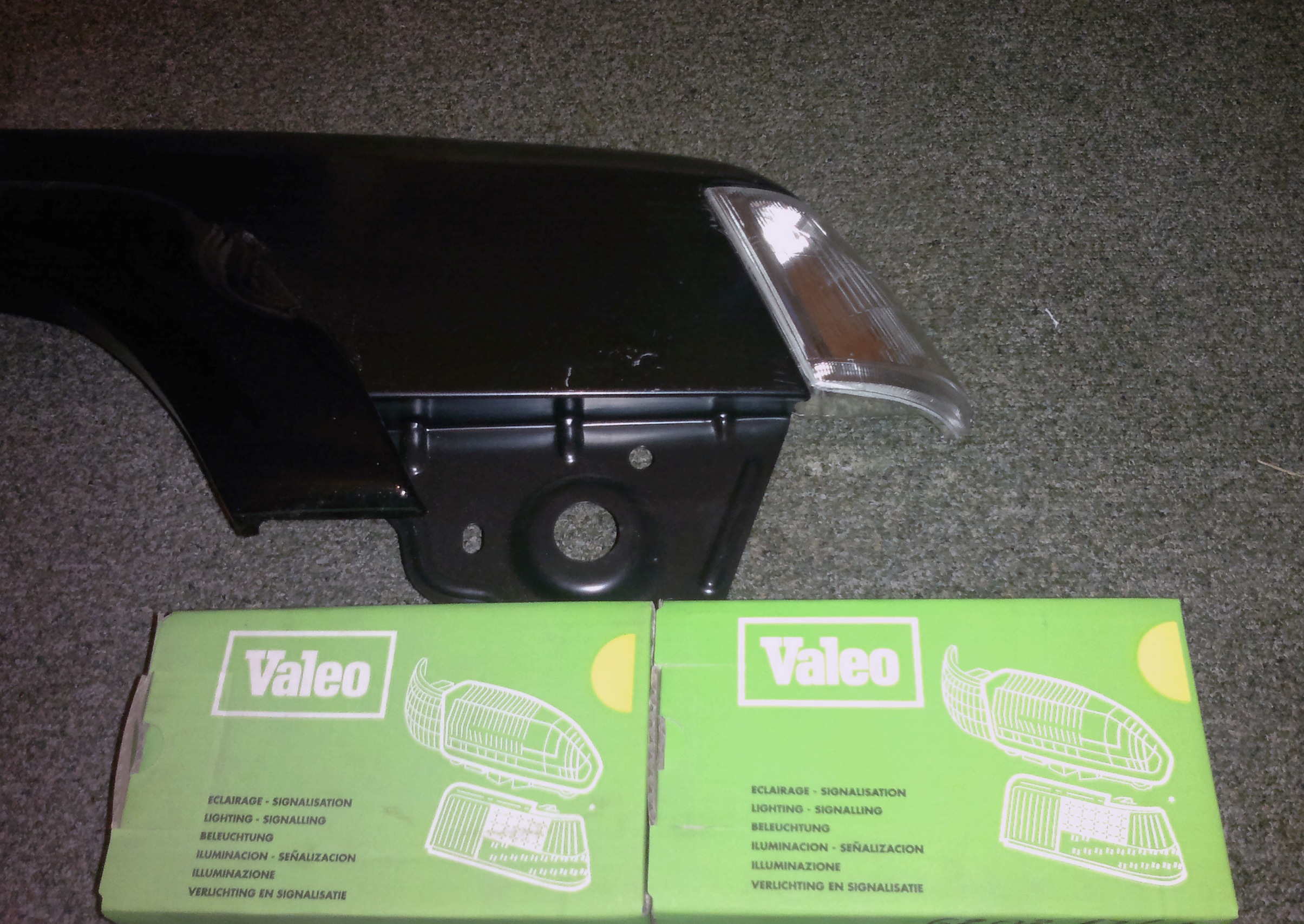 Małe przygotowania do zimowego odświeżenia wizerunku auta. Na zdjęciu nowy, ory błotnik oraz nowe, ory białe kierunki.