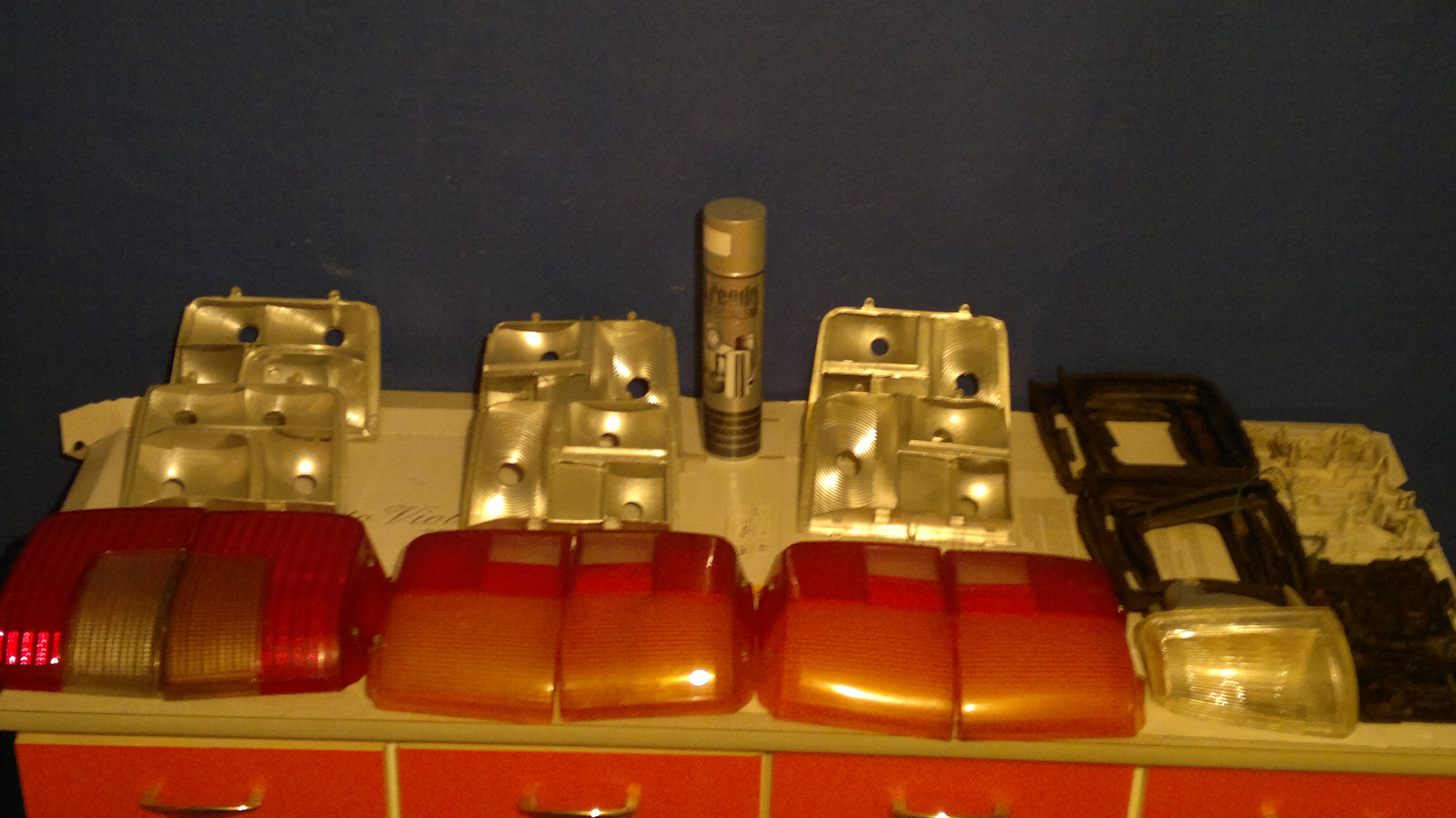 Wymyłem klosze i wymalowałem odbłyśniki lamp tylnych, oraz wyczyściłem styki coby nie było niespodzianek jak przyjdzie czas je założyć