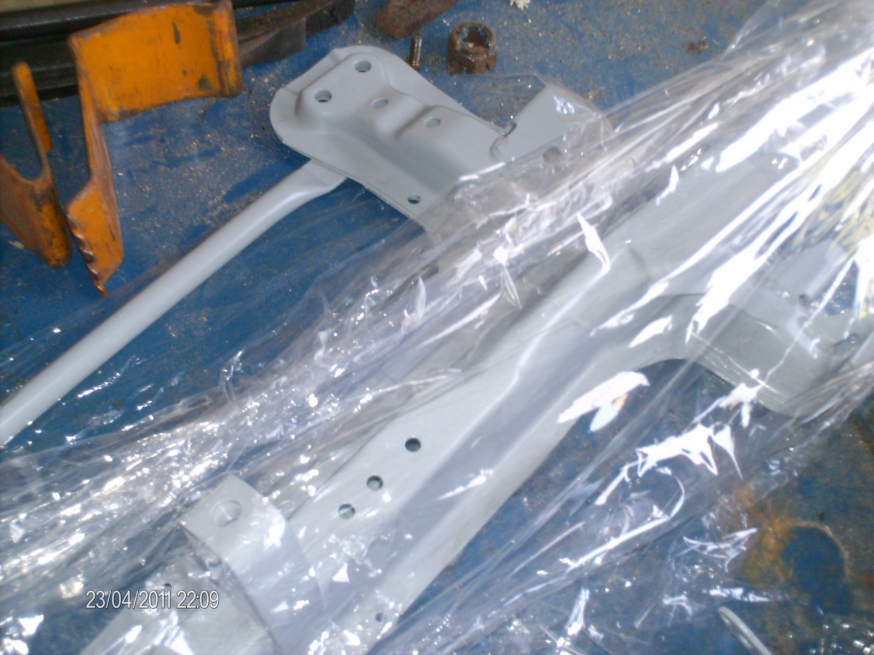 Sanki i te szpargałki na trzeciej fotce są w docelowym kolorze już. Wahacze, zależy jeszcze jak je zregeneruje, to albo w tym samym kolorze, albo czarne. Teraz przygotowuje kolejną partię rzeczy do piaskowania, tak mi się spodobało. Serwo, półkę pod aku...coś jeszcze się wymyśli.