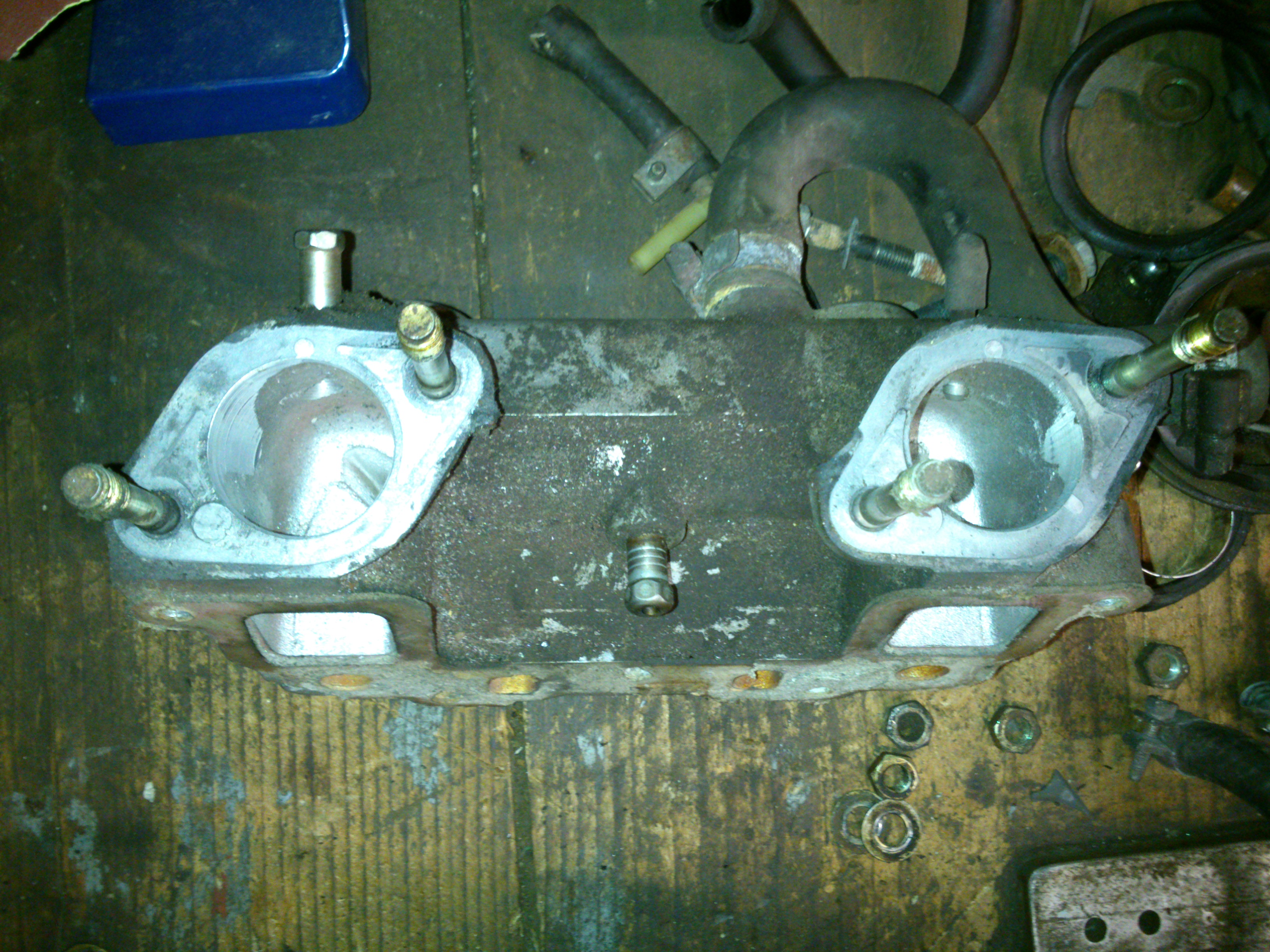 skoro masz kogoś kto spawa to naprawdę lepiej będzie jak odrysujesz flansze z mono wtryska odrysujesz flansze z leżakowego od strony gaźników i wyspawa ci to z rurek mogą być nawet ameliniowe jak masz taka możliwość pamiętaj, że im gaźnik bliżej zaworu tym lepiej, a jak w TU jest podgrzewany kolektor to można tam zrobić wyjście na chłodziwo do gaźnika na flanszy tej od strony silnika :)