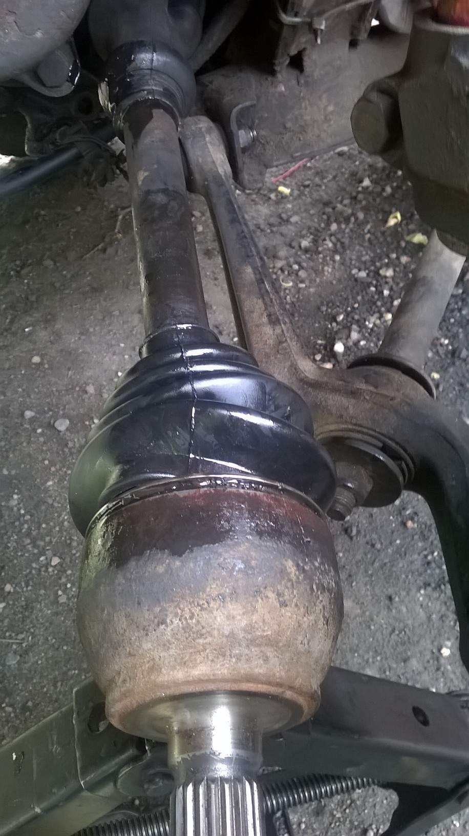 Wymieniłem z obu stron zewnętrzne osłony półosi, metodą na stożek który samodzielnie wykonałem z butelki po oranżadzie HELENA i pianki poliuretanowej :)