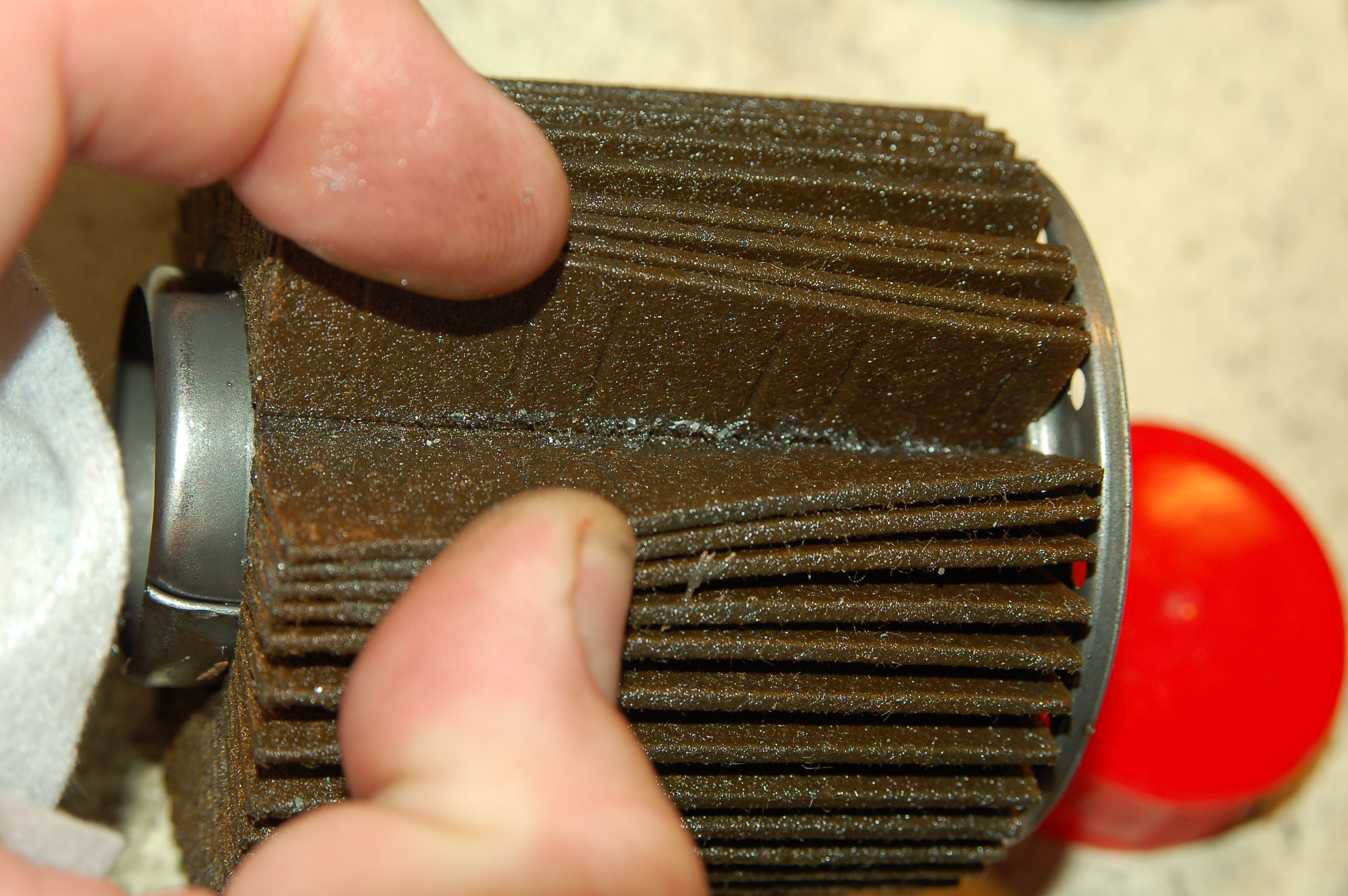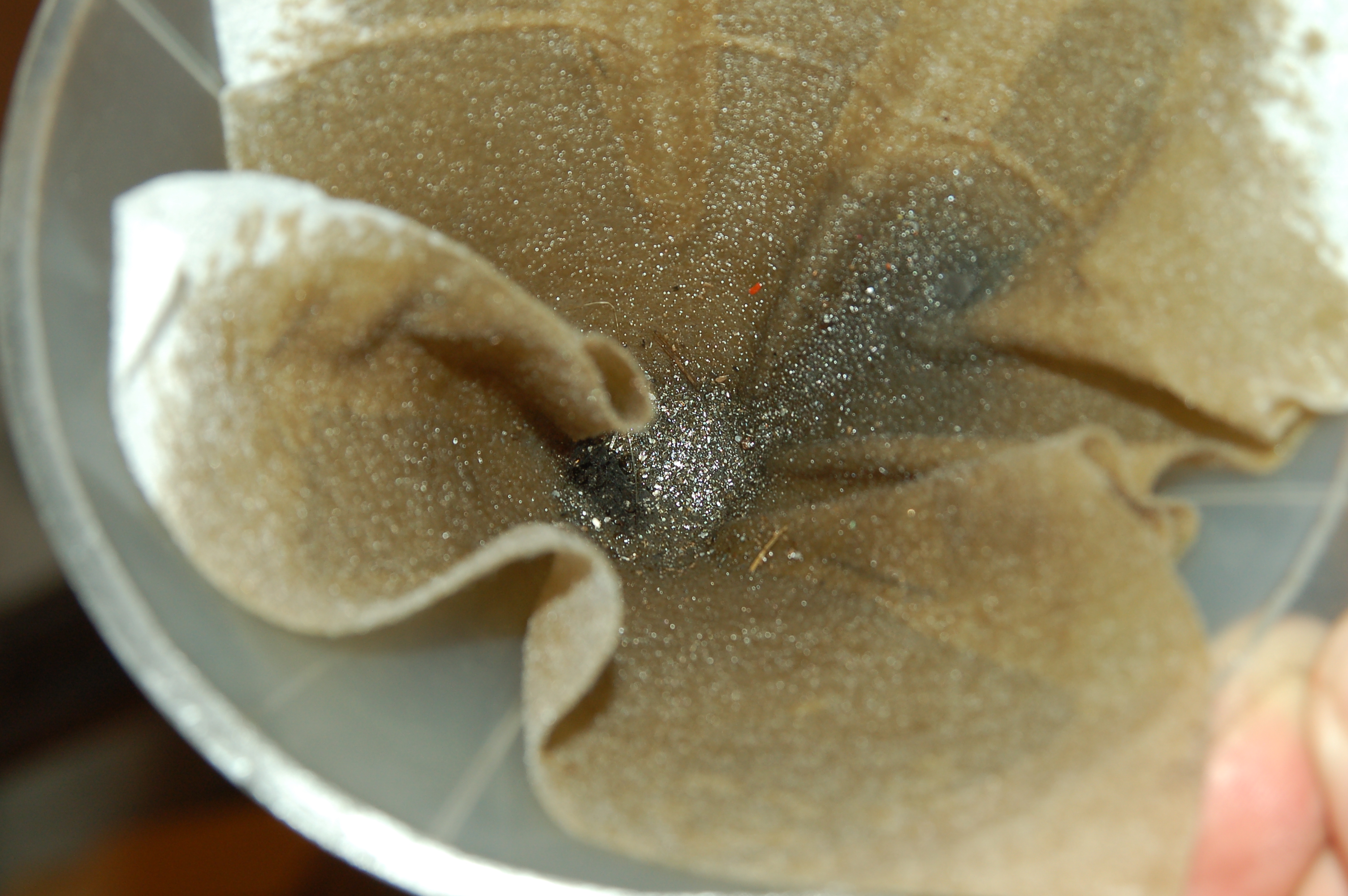 cześć tego co widać pochodzi również z "rozdzewiczania" metalowej puszki filtra.