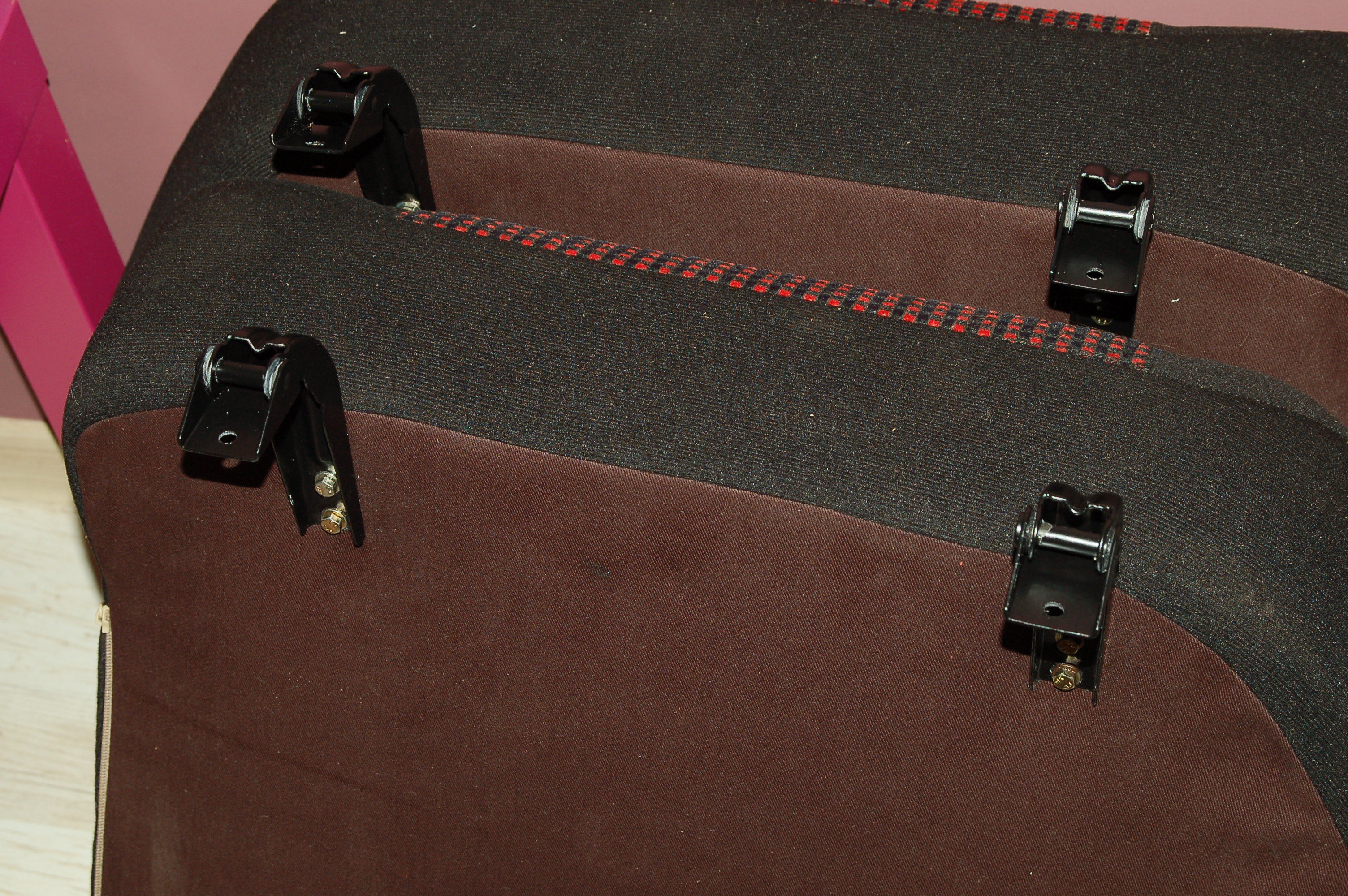 Kolejny temat to odnowione tylne siedziska...koszt..około 70 zł łącznie z wymianą suwaków. Zdecydowałem się na plastikowe, by nie było z nimi na przyszłość problemów. Materiał obicia praktycznie identyczny z oryginałem.