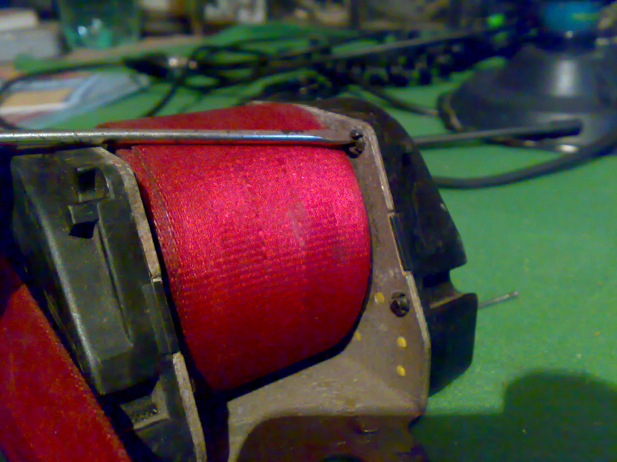 Delikatne odgięcie plastikowej zapadki (lewy dolny róg zdjęcia) odblokowuje rolkę na która nawinięty jest pas.