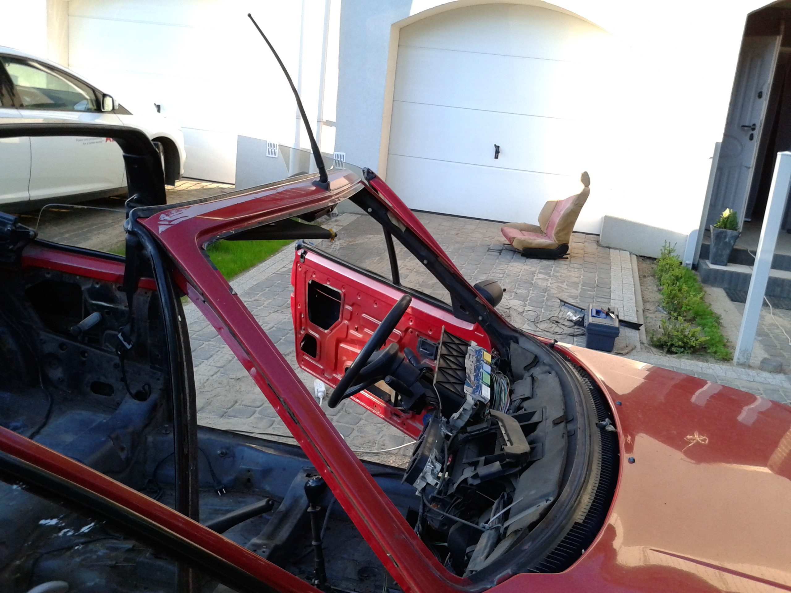 No dzis auto straciło reszte wnetrza został fotel kierowcy i wykładzina deska juz tez w połowie rozebrana, te wszystkie przewody to pozostałości po super okablowaniu nagłośnienia