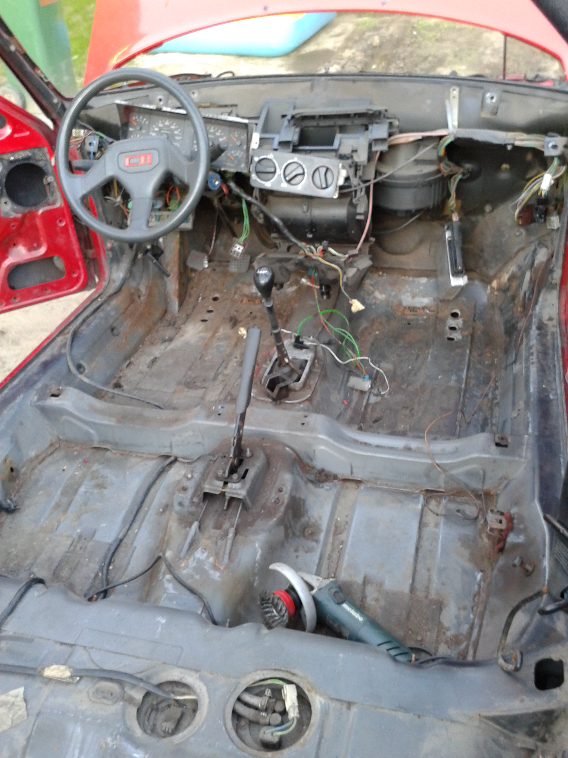 no to najnowszy raport z prac, auto zostało całkowicie rozebrane w środku, dziury juz sa porobione, podłoga wymalowana Brunoxem, w domu juz nie mam miejsca na nic bo wszedzie leża cześć