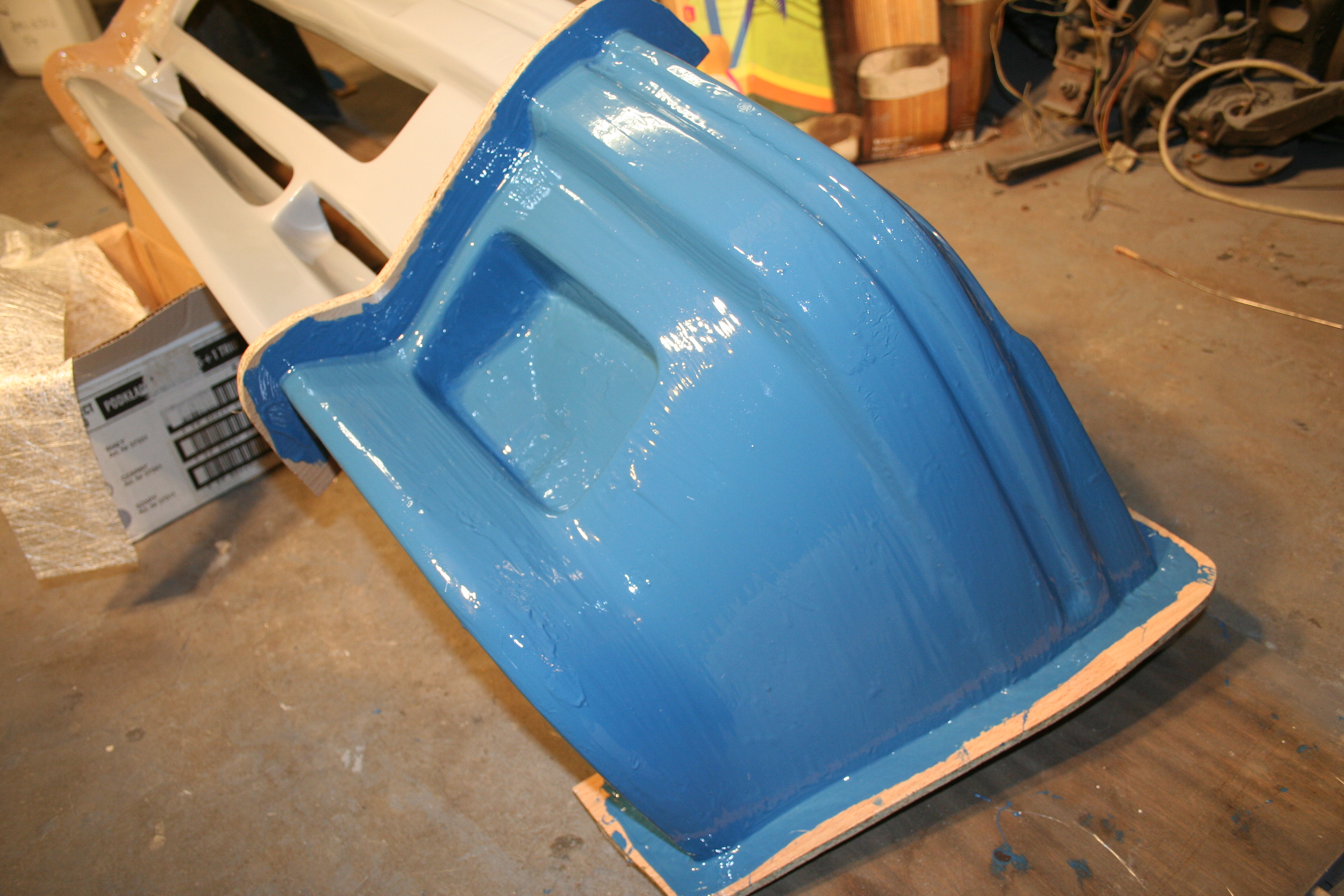 Mimo przechowywania samochodu w całkiem niezłych warunkach laminaty były uszkodzone, miejscami odklejone i z popękanym żelkotem. Przedni zderzak połamany po stłuczce. Stad decyzja o kompleksowym remoncie samochodu. Po konsultacjach u naszego forumowego specjalisty od laminatów i lekturze stron o budowie laminatowych jachtów