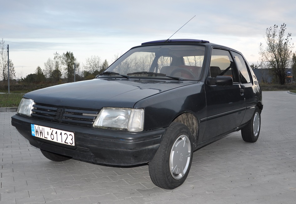Peugeot 205 XR 1.1 60KM z 92 roku, do stanu kolekcjonerskiego trochę mu daleko, ale jest w miarę kompletny.