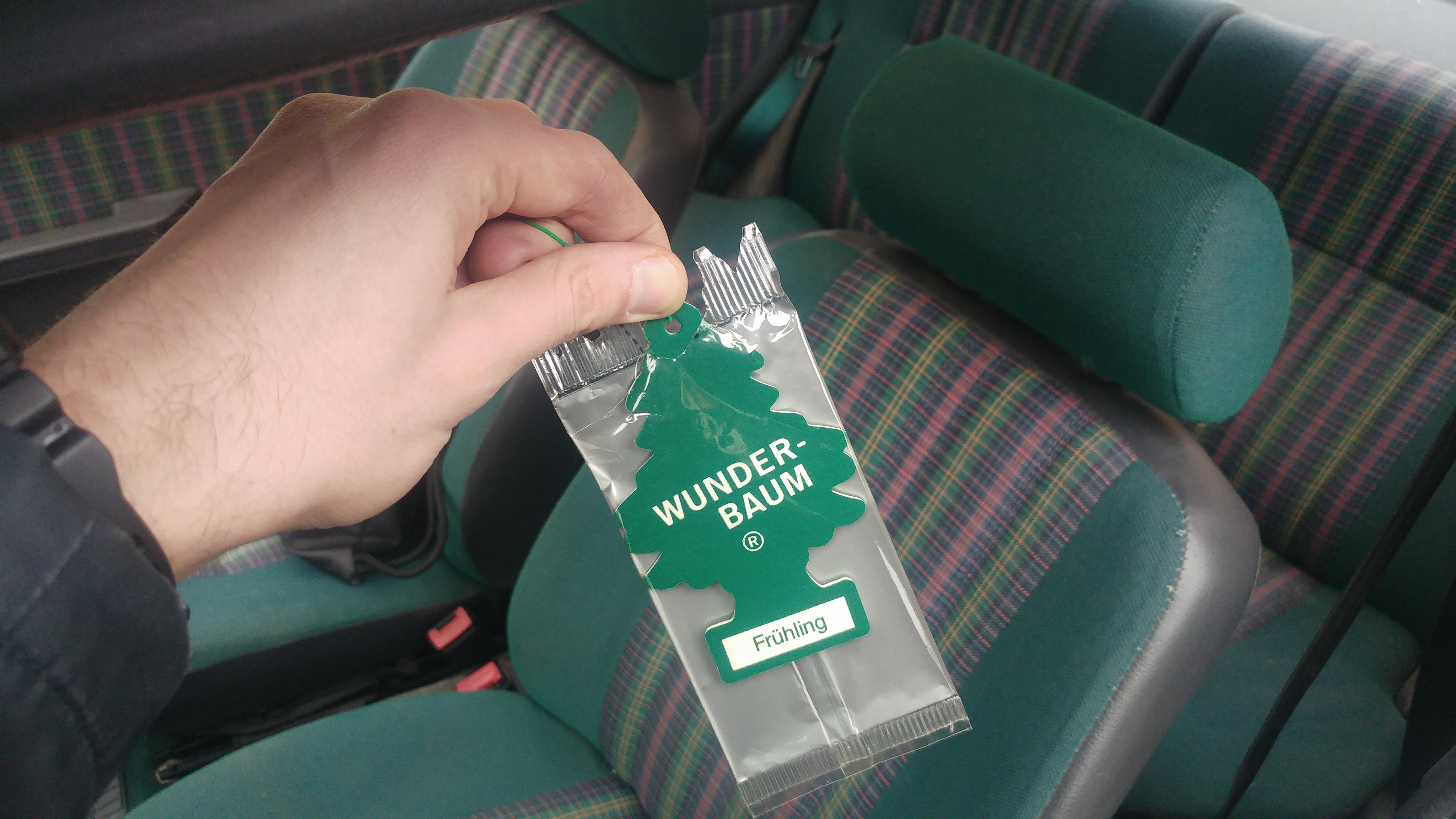 Choinka zapachowa pod kolor tapicerki, żeby zamaskować dziwną mieszankę zapachów.
