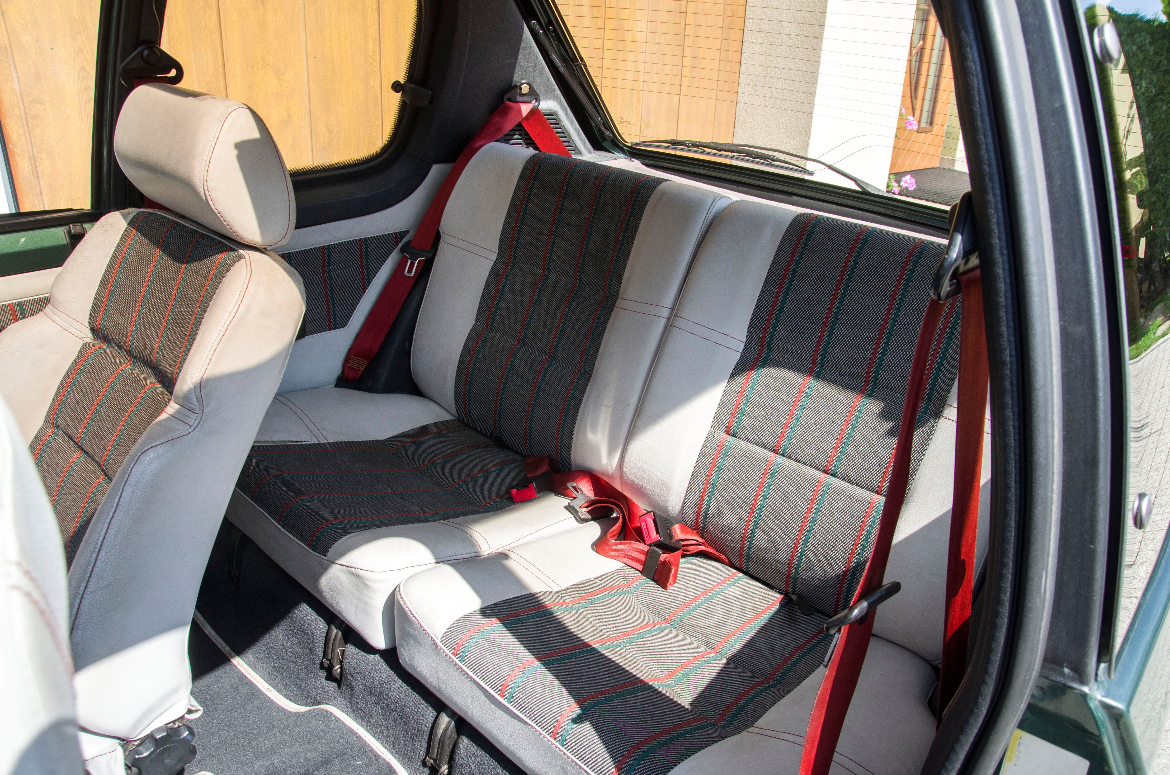 Wnętrze do roboty. Tylna kanapa w jednym miejscu rozeszła się na szwie, przednie fotele obydwa do zrobienia, aczkolwiek da się na nich siedzieć