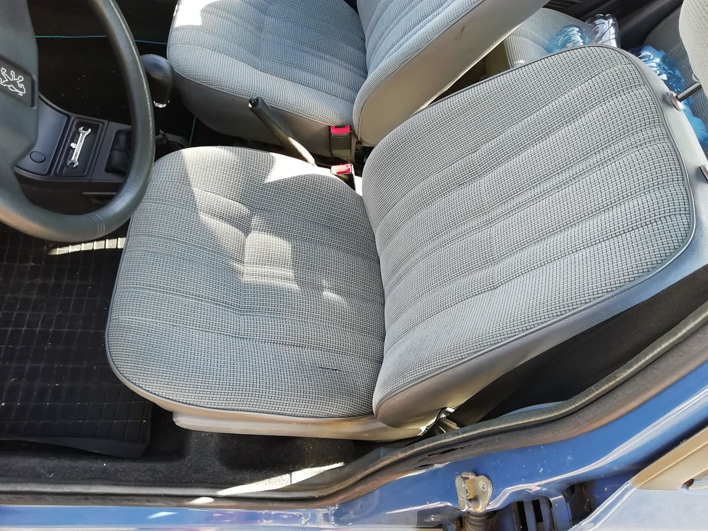 Jako, że samochód znajdował się we Wrocławiu, temat konsultowałem na bieżąco z lokalsami: Slavko i Bananowcem. Po paru dniach wysłałem Sławka na przeszpiegi, żeby wyniuchał, czy z tej padlinki sępy są w stanie ulepić jakiegoś kotleta. Raport szpiegowski był niezwykle obfity i budujący. Samochód ma ładny lakier, oryginalne wnętrze, wszystko wskazuje na bezwypadkowość karoserii. Jest czysty, niewytłuczony, kompletny. Z dwoma zestawami kluczyków. Z minusów: cieknąca pompa wody, luz na kolumnie kierowniczej. Brak przeglądu. Brak książek serwisowych i instrukcji. Zaginęły.