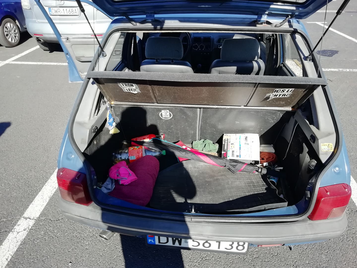 Rowerowe naklejki ładnie zeszły... Wszystko inne też się doczyściło. Używałem APC firmy Koch Chemie. Usunąłem nim nawet plamy z rdzy i towotu/smaru, które zastałem na oparciach foteli od strony bagażnika i na zagłówku kierowcy.