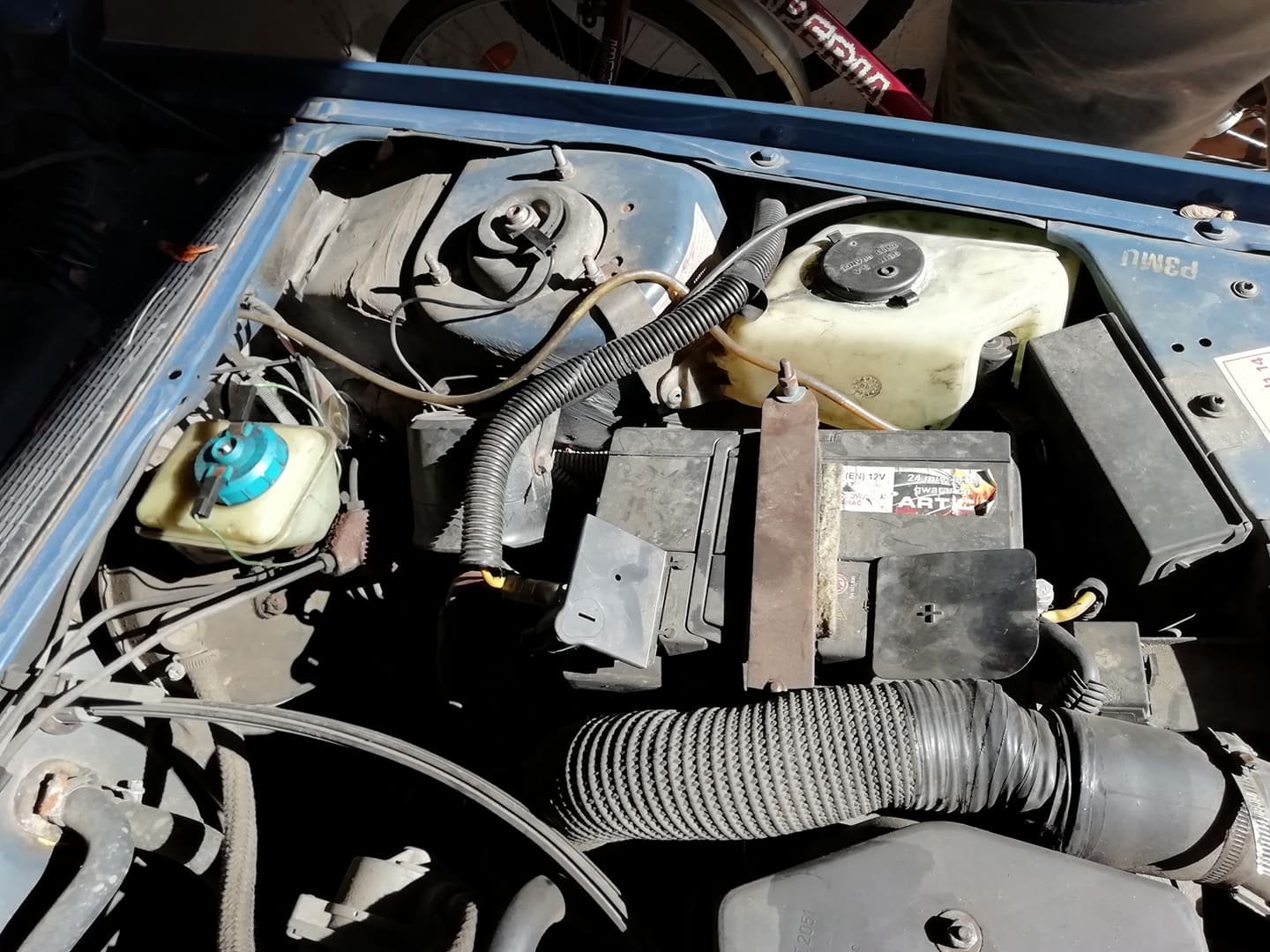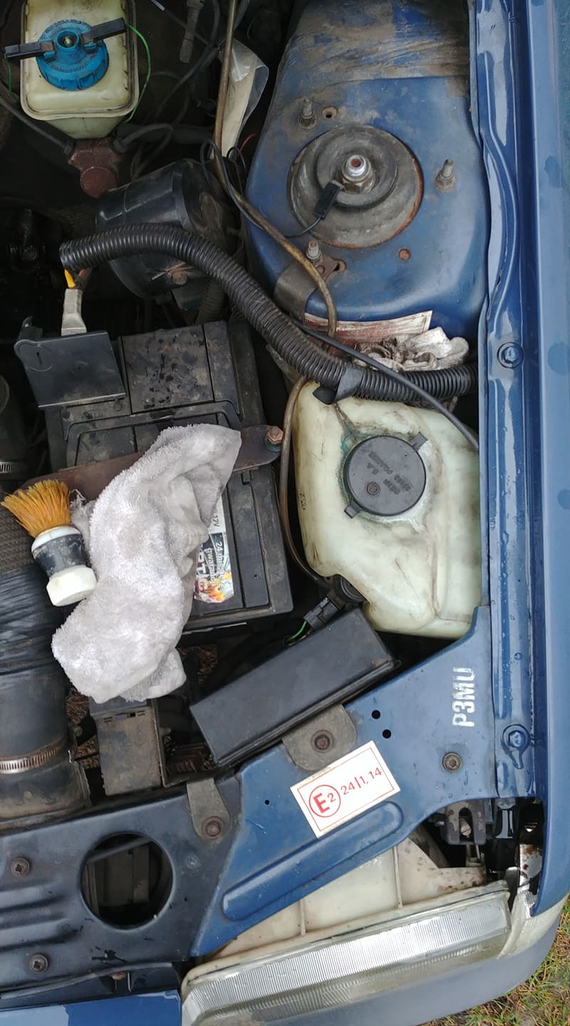 Trochę ogarnąłem komorę silnika. Zimno strasznie, więc na razie tylko z grubsza.