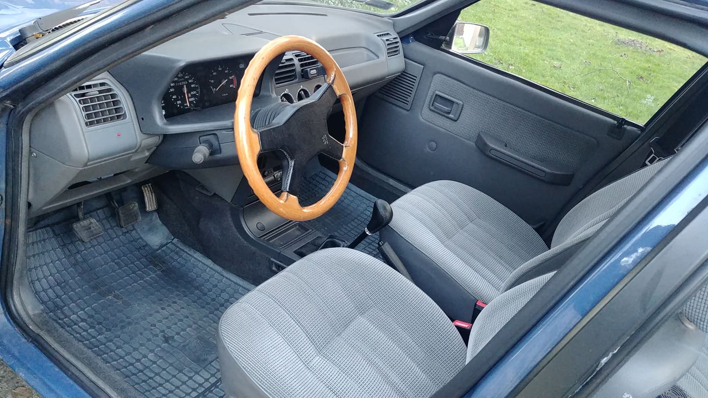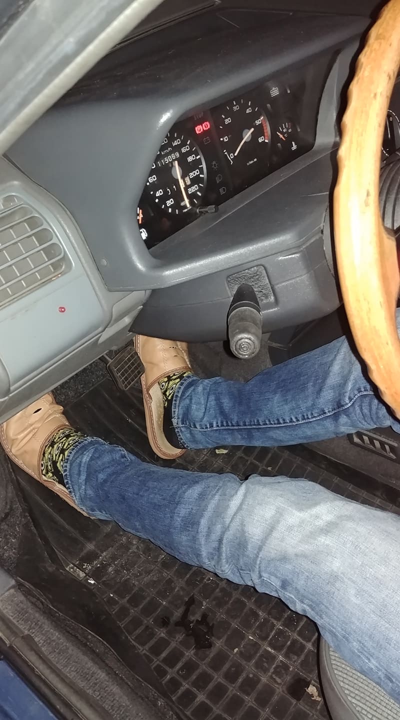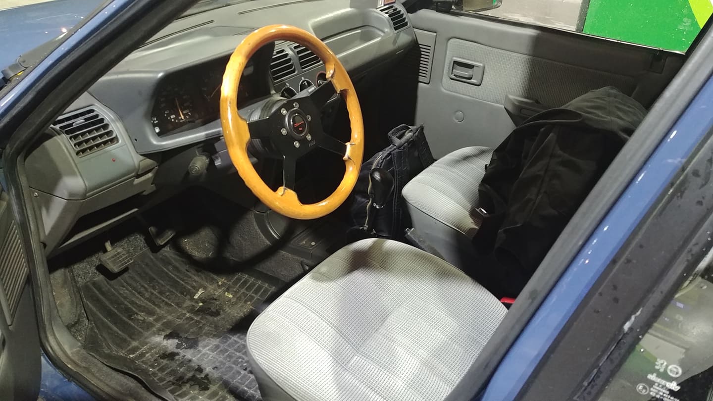 W sobotę znalazłem trochę czasu, żeby z grubsza ogarnąć parę drobiazgów. Zamiennik lusterka poszedł do kosza, a pojawił się oryginalny Britax. Przy okazji wizyty Filipczaka, udało nam się przypadkowo aktywować wyjący wniebogłosy alarm, a następnie go unieszkodliwić. Po południu na inspekcję wpadł Druan. Zmieniliśmy koła na mniej krzykliwe i w egipskich ciemnościach powalczyliśmy z kabelkologią instalacji radia. Misja zakończyła się sukcesem i w końcu w SRD gra muzyka. Ponadto ogarnąłem bajzel we wnętrzu, zaopatrzyłem kierownicę w skórzany dekiel z emblematem, podokręcałem parę śrubek i odbyłem pierwsze lokalne jazdy. Druga para drzwi faktycznie się przydaje.