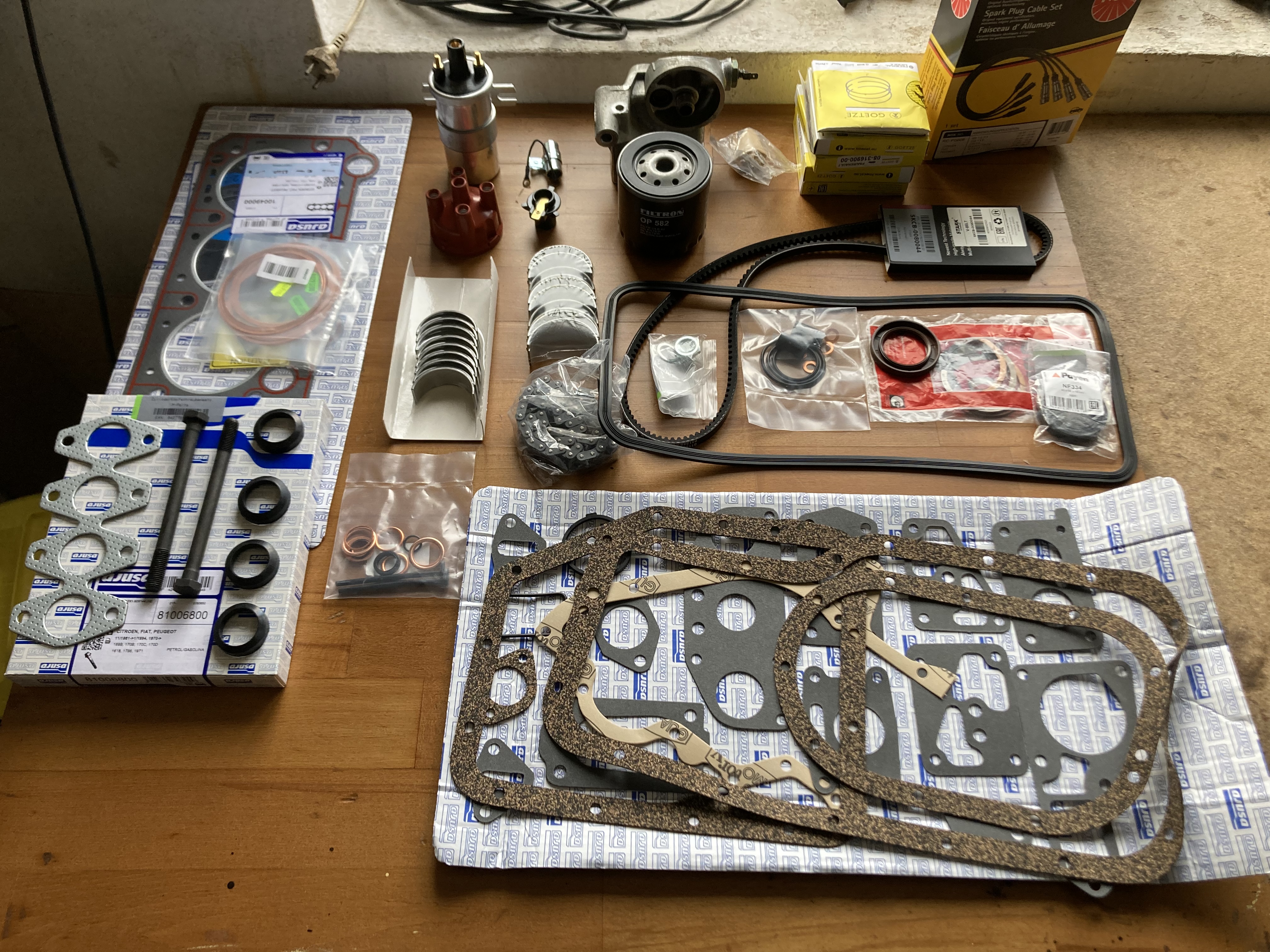 Komplet części do wymiany w przednim zawieszeniu, wyczyszczony gaźnik, głowica po remoncie, itd.
